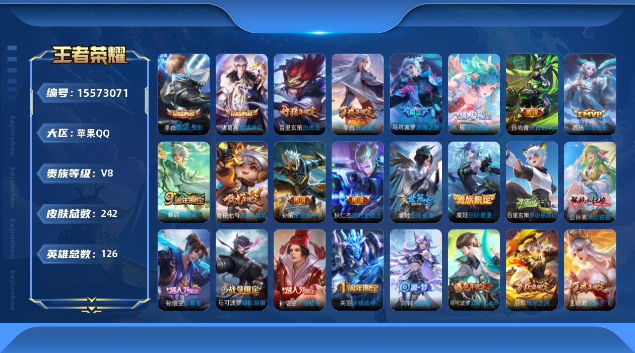 [15573071]V8 2典藏 13传说 126英雄 242皮肤 可修改实名