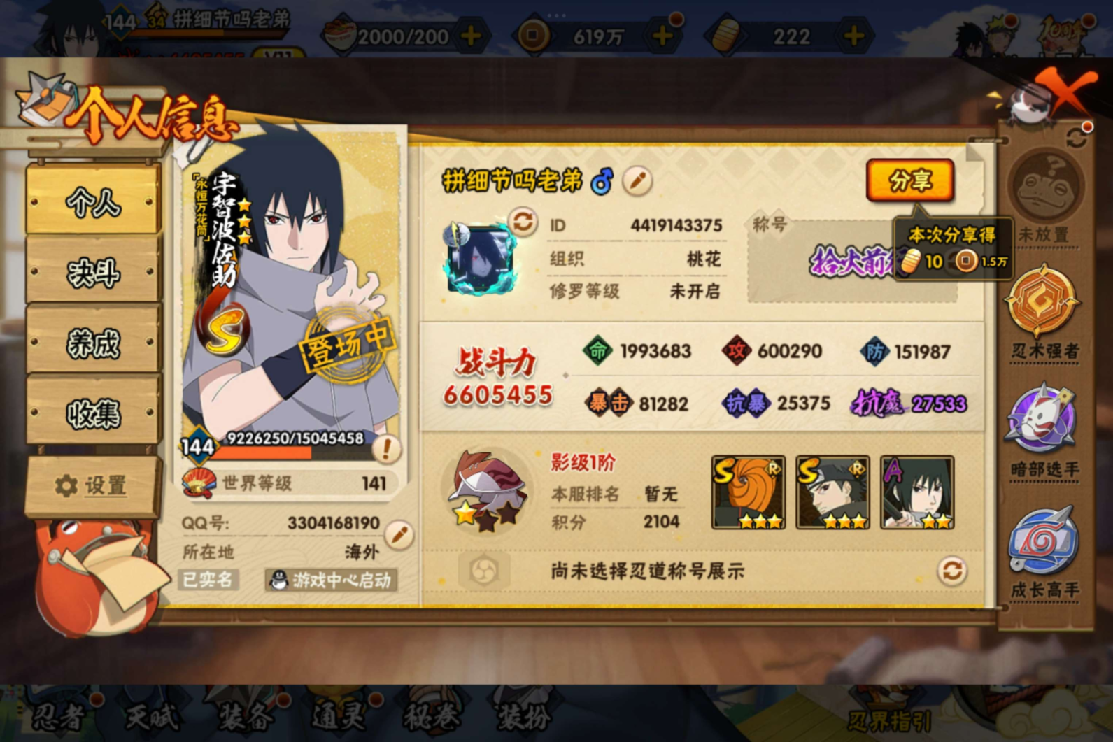 安卓QQ-可二次-11个198忍者-S忍者数:15-A忍者数: