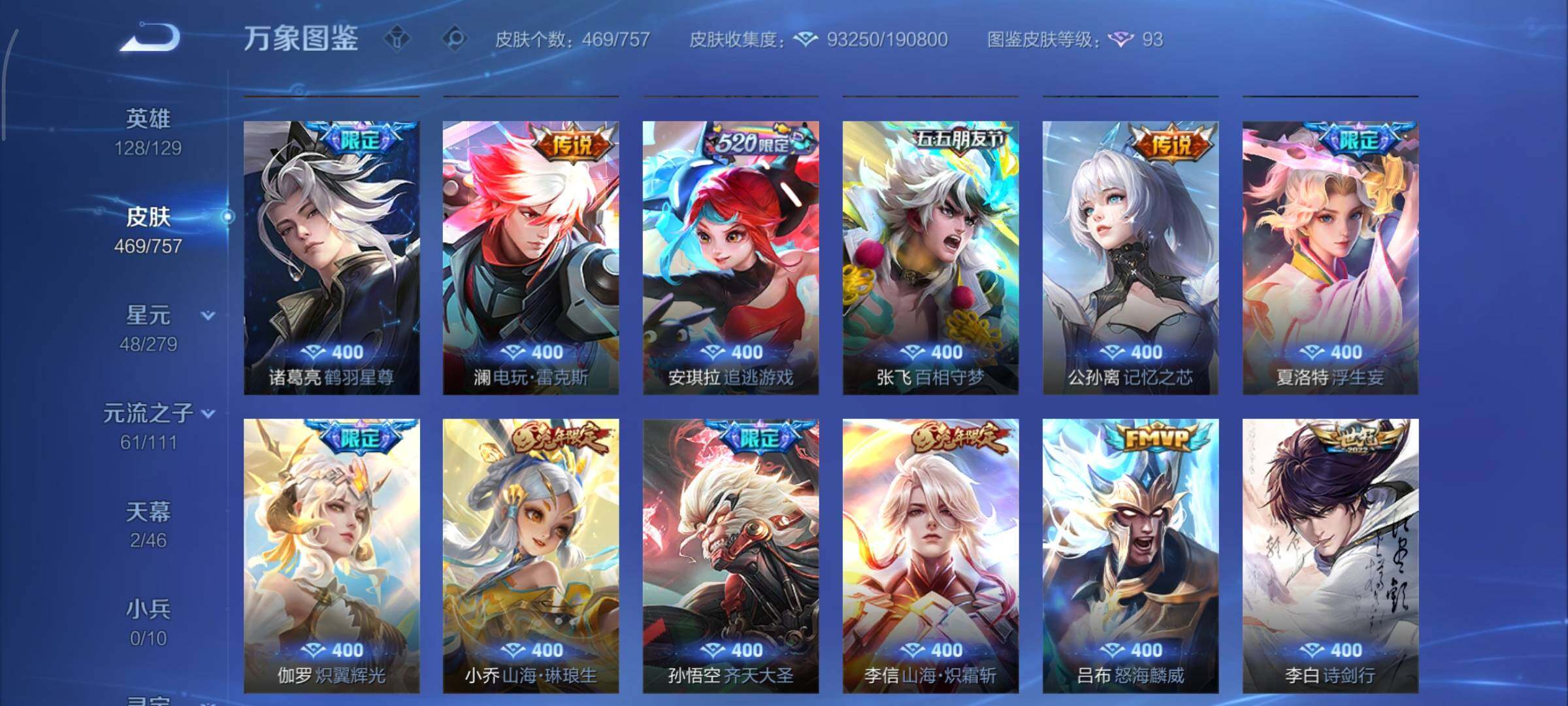 可换绑【V10精品女号 夏洛特金标1.28万 貂蝉慕夏 瑶全皮 西施全皮 多无