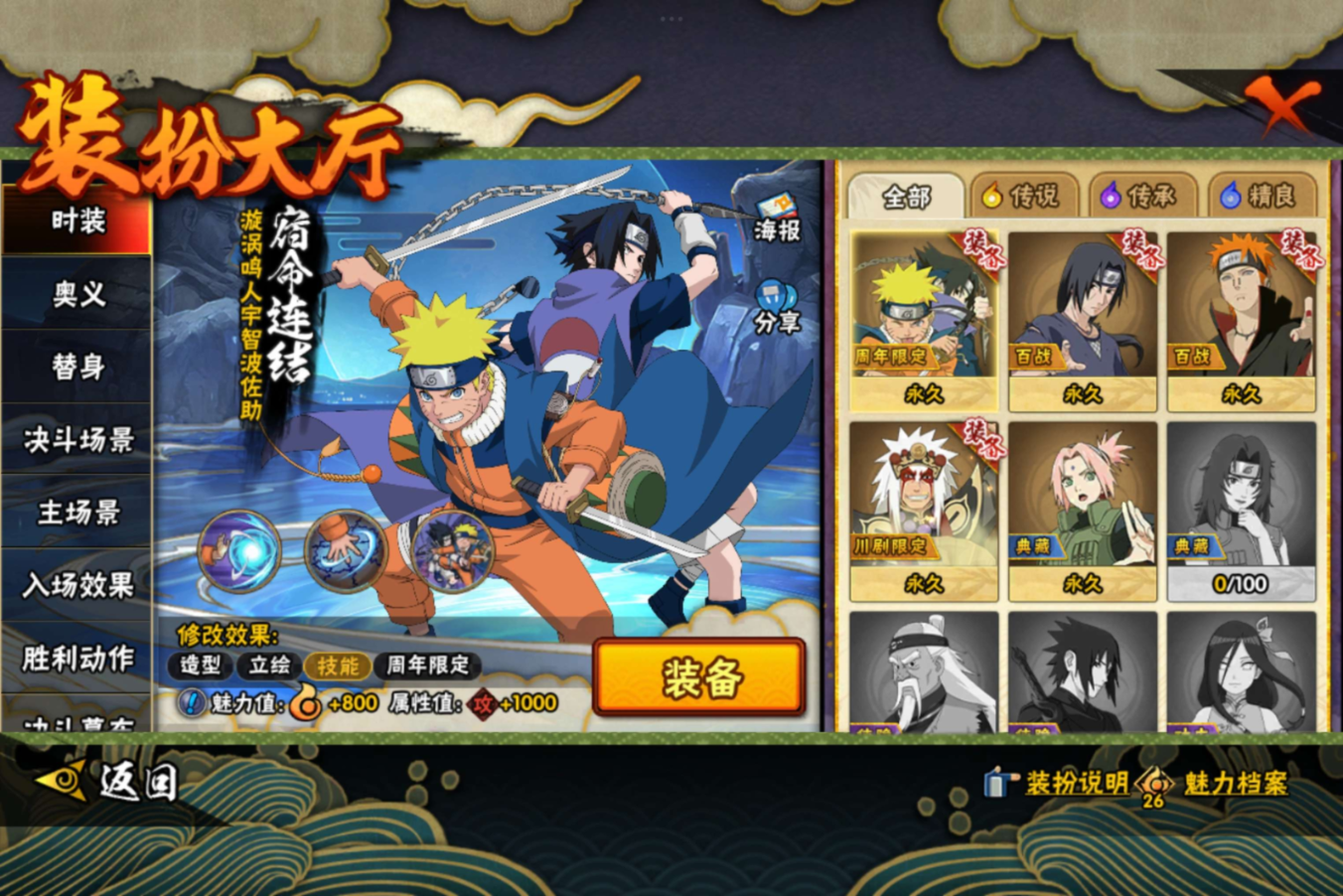 【S级忍者】旗木卡卡西「须佐能乎」(3星),自来也「舞之豪杰」(3星),宇智波鼬「须佐能乎」(3星),佩恩「天道」(3星),