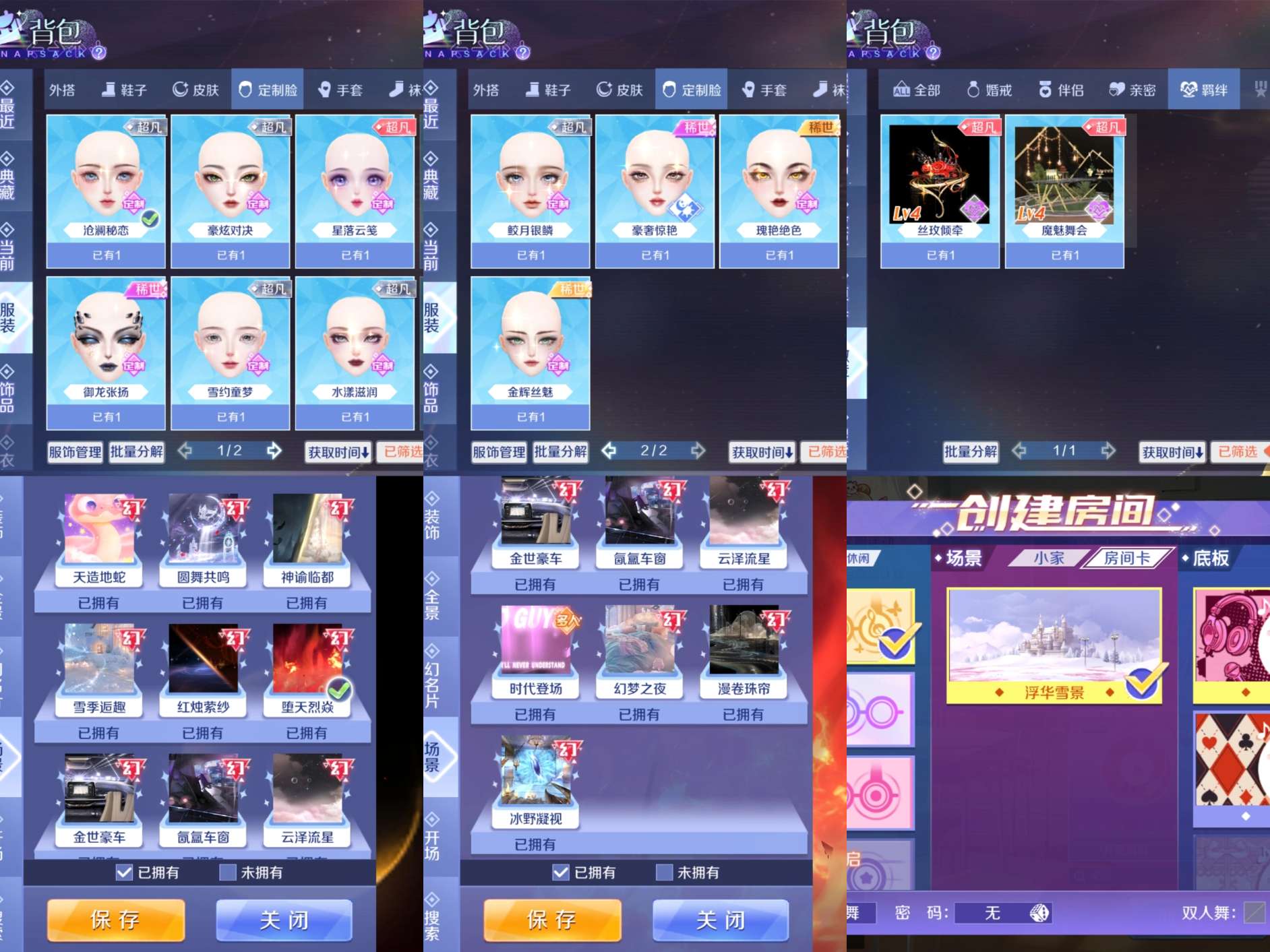 2稀世73超凡(黑超12)49徽章 10定制脸 3管家 13幻名片 1房间卡 钻5 105级 很白