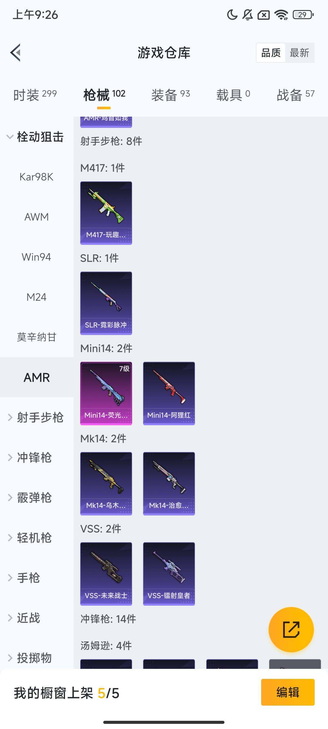 【粉色枪皮等级】:Mini14-荧光虫舞(七级),DP-28-豹影疾电(五级)