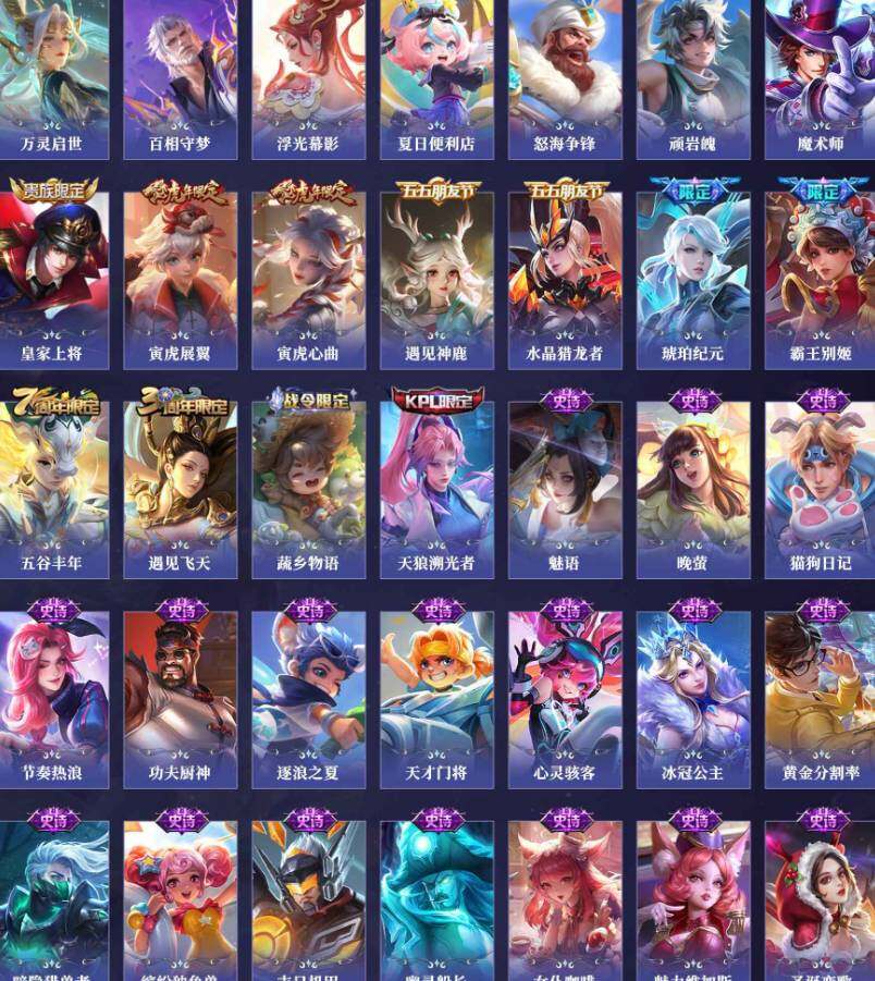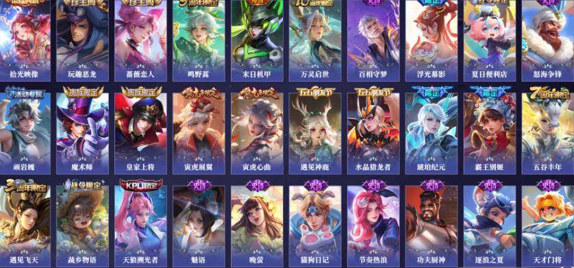 【限定皮肤】:蒙犽顽岩魄,蔡文姬夏日便利店,大乔绒语心约,虞姬夏日便利店,姜子牙天穹之誓,杨戬破阵退雄兵,狄仁杰阴阳师,赵云皇家上将,孙尚香蔷薇恋人,高渐离玩趣恶龙,孙膑寅虎展翼,典韦穷奇,狄仁杰魔术师,狄仁杰万华元夜