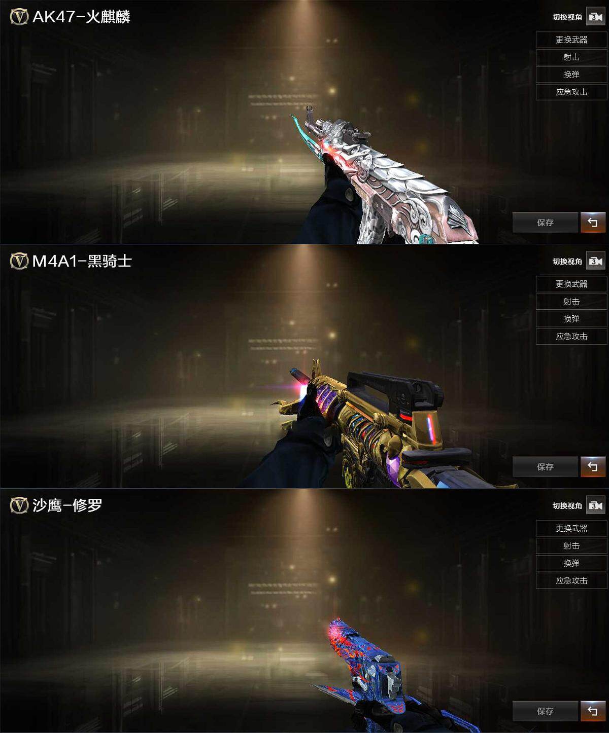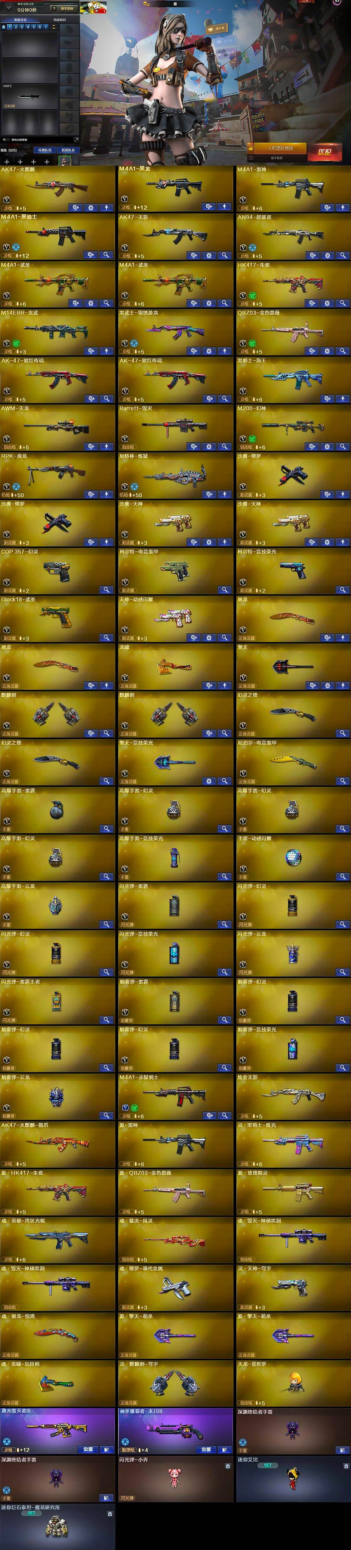 【热门武器】:QBZ03-金色蔷薇,M14EBR-玄武,HK417-朱雀,M200-幻神,M4A1-黑骑士,RPK-盘龙,加特林-炼狱,COP 357-幻灵,沙鹰-修罗*2