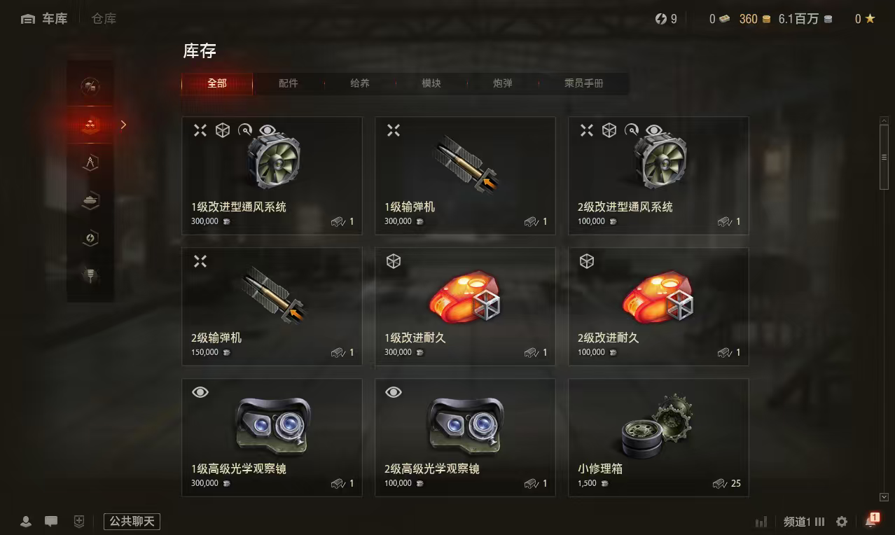 银币600万、6配件1辆7级金币车:IS2S3辆6级金币车:斯柯达T40、131虎式、T3485