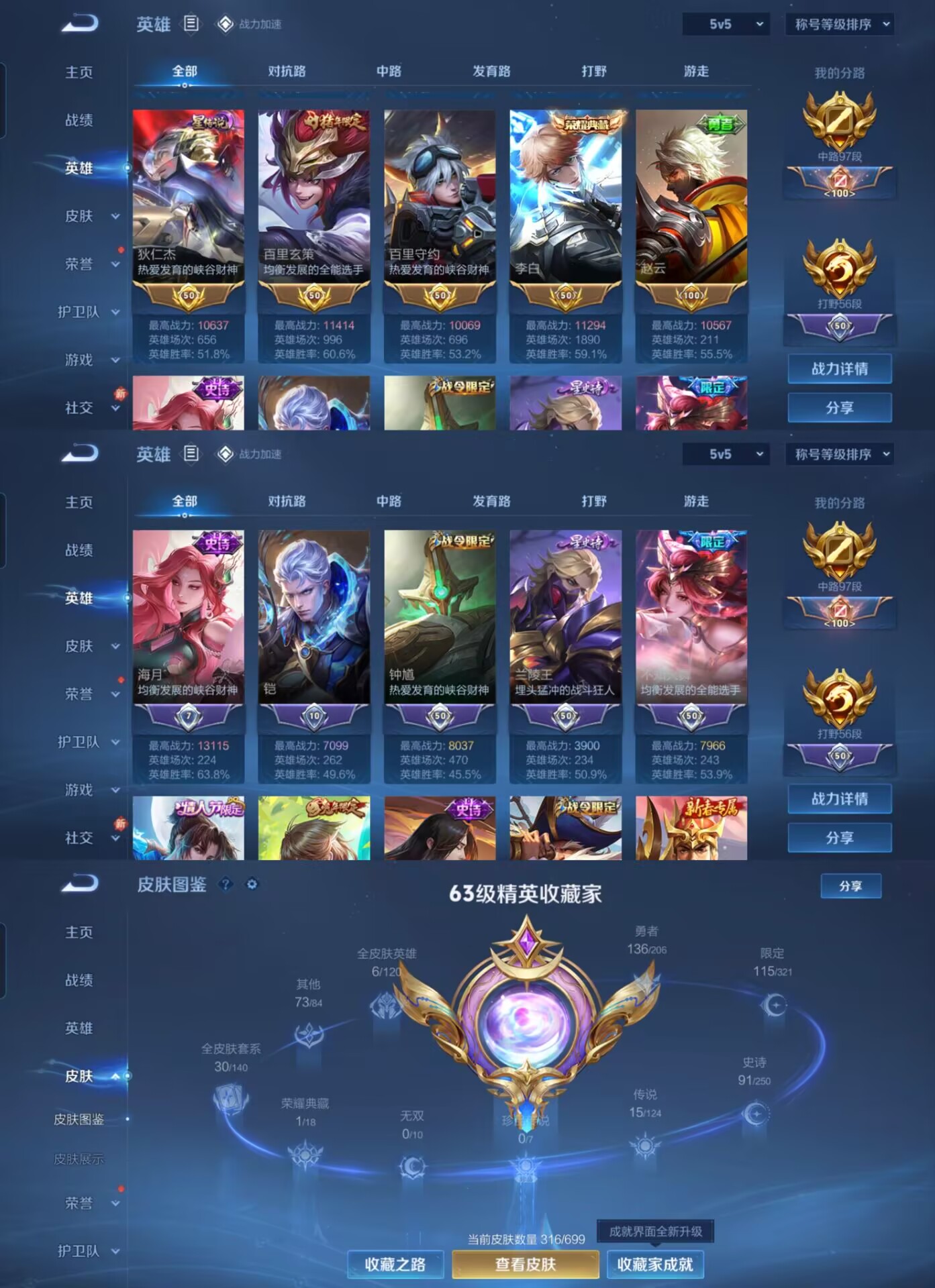 MWZ100055【全能大师 97段中路 56段打野 7国标8金标31印记 大国标金蝉 小国标奕星 小国标嬴政 小国标沈梦溪 小国标周瑜 小国标干将莫邪 小国标扁鹊 万战金标 金标姜子牙 金标元流 金标上官婉儿 金标狄仁杰 金标玄策 金标守约 金标李白 金标赵云 316皮肤1典藏15传说V8】安卓Q-316皮肤-123英雄