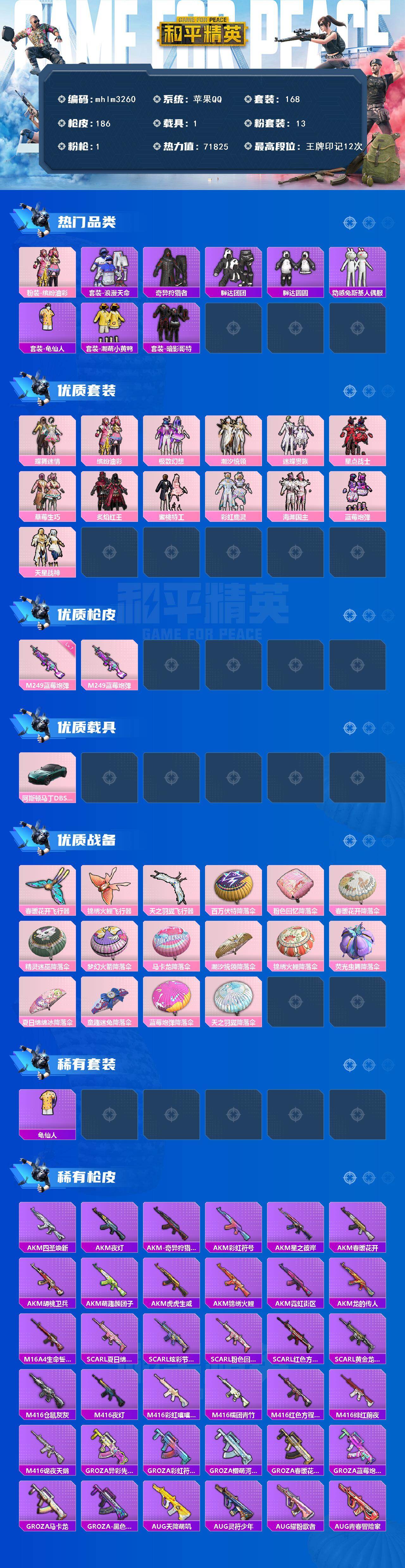 【mhlm3260】苹果 手Q-13粉装-1特效枪-1载具-3粉色飞行器-71825热力值-12王牌印记-168套装-186枪皮