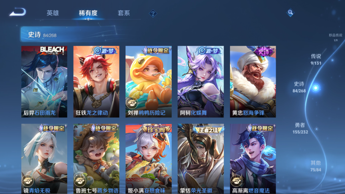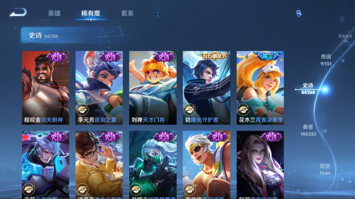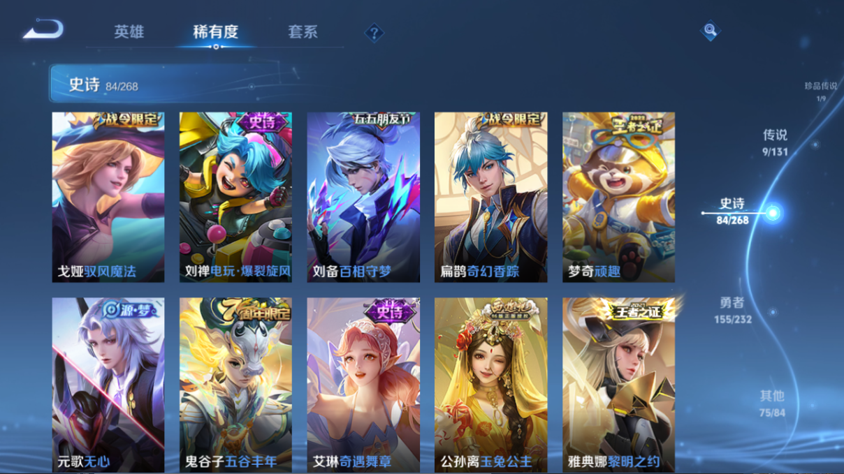 325皮肤 V7 1典藏 1珍品 9传说 至尊宝 白虎志