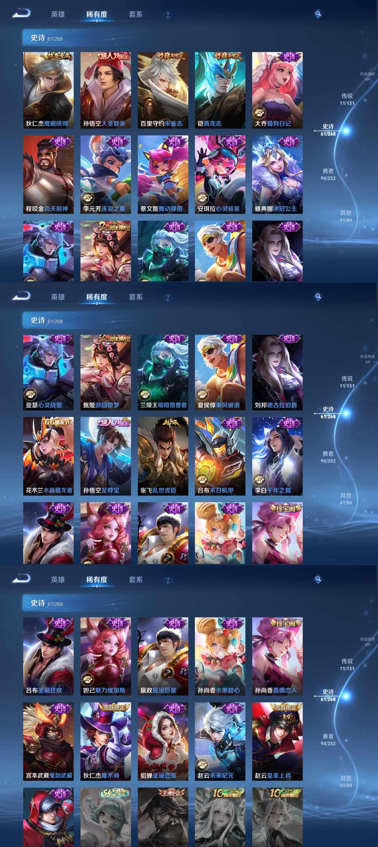 208皮肤1典藏 11传说 1星传说 金色仲夏夜 61史诗 V8