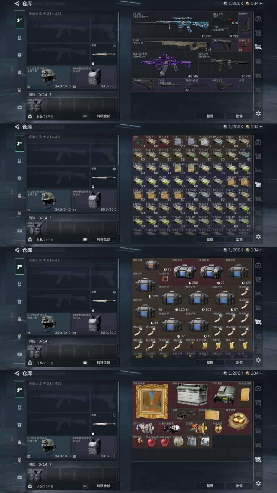 仓库价值64.3M 哈夫币1200K 干员 红狼 电锯惊魂 露娜 金牌射手