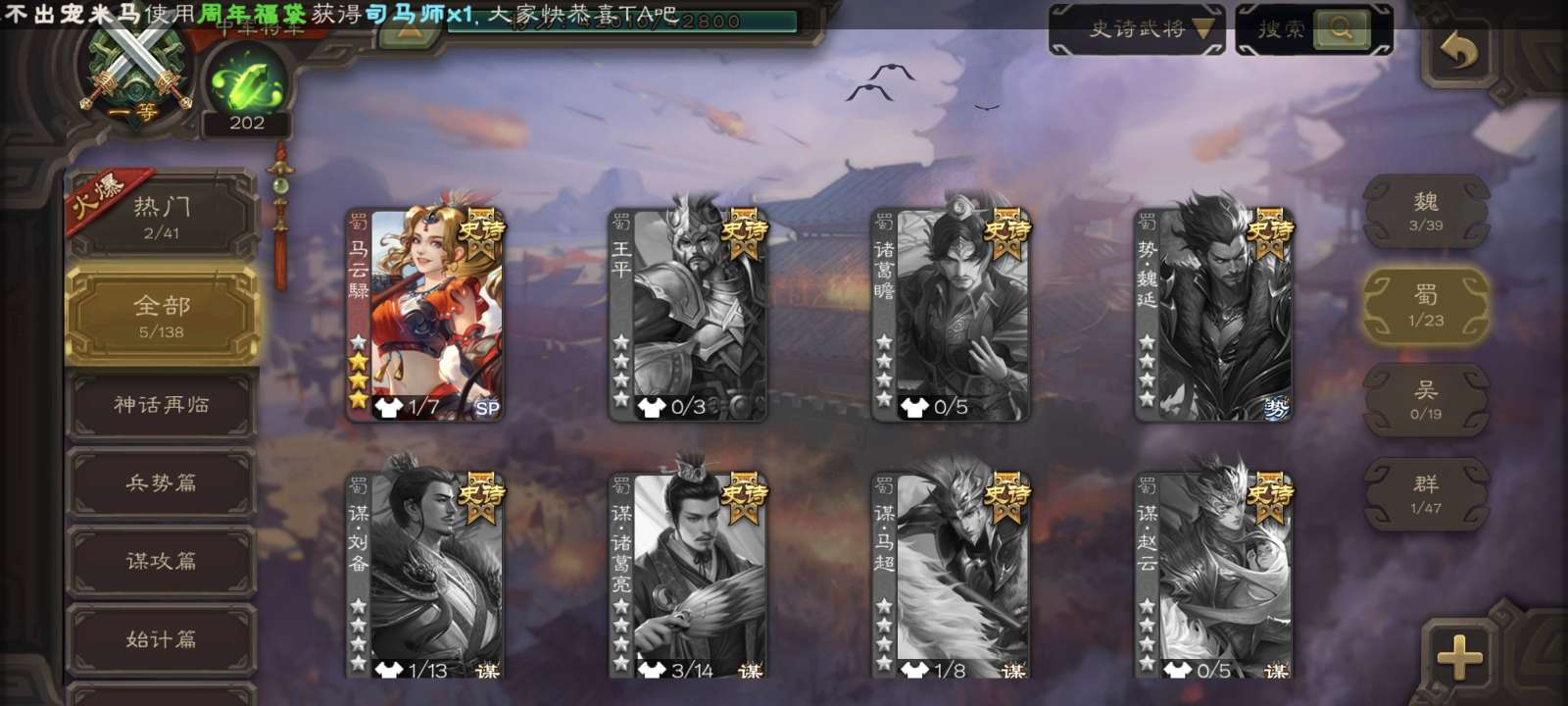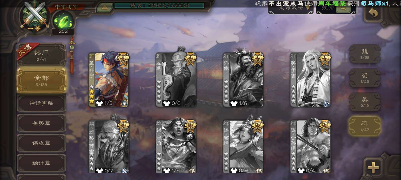 7000多豆子 三卡足 有一些好的天宫将 珠子将有一个星甘宁 5个史诗多精品 四个真动皮