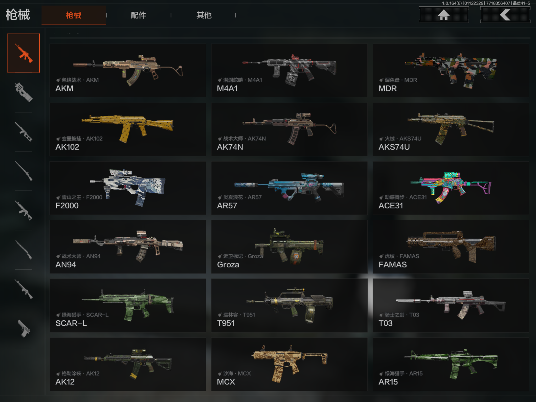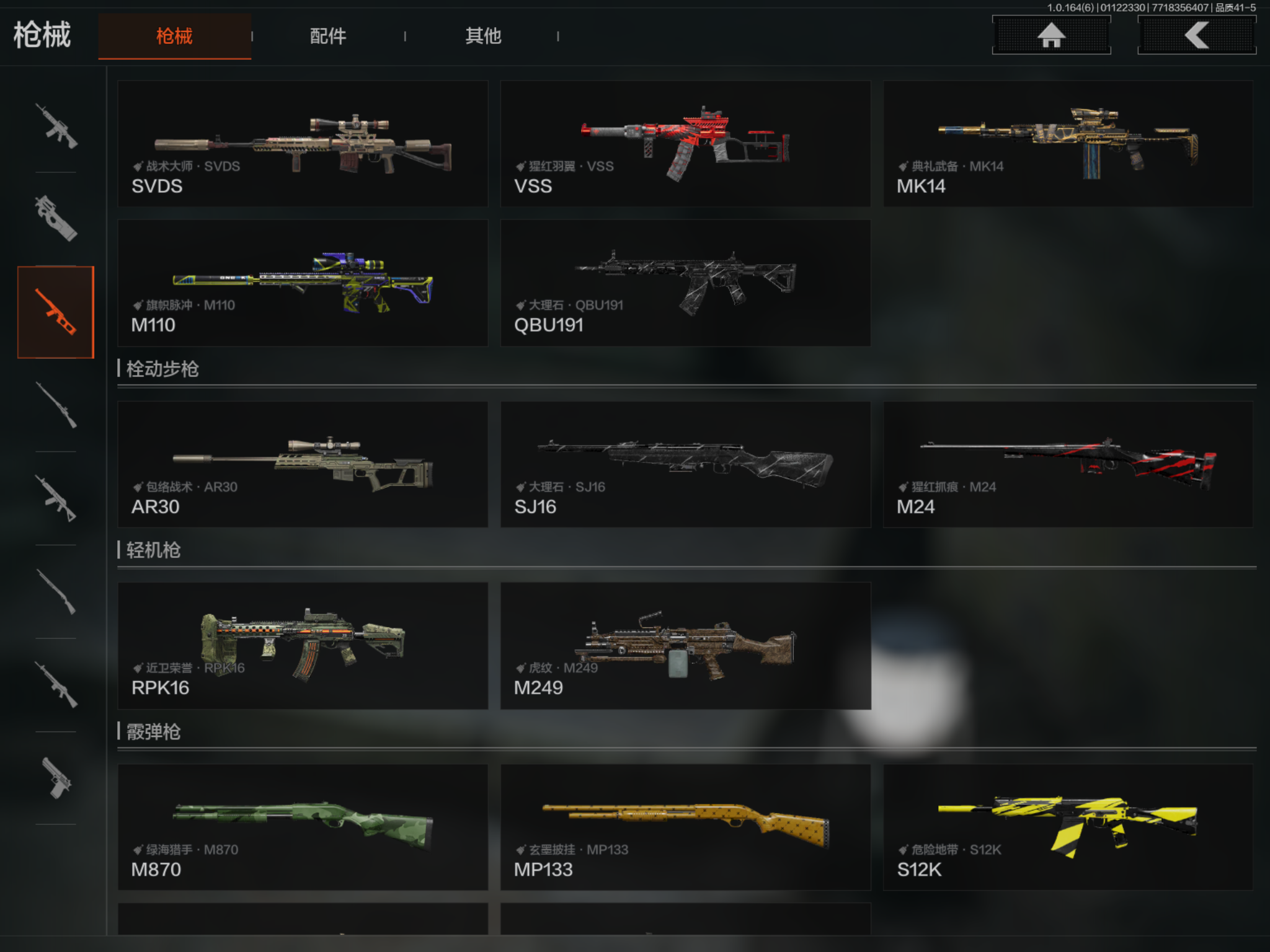 MWT4289苹果Q-等级30-仓库价值669K-科恩币88K-【套装】 速度新星赛车服 王国卫队礼装:轻装 城市户外运动套装 财团之手作战套装 和平先锋作战套装 南境烁金.套装【枪皮】 包络战术. AKM 战术大师 . AN94 利齿风暴.MPX 近卫荣誉.RPK16【近战武器】 空腔战术 工兵铲
