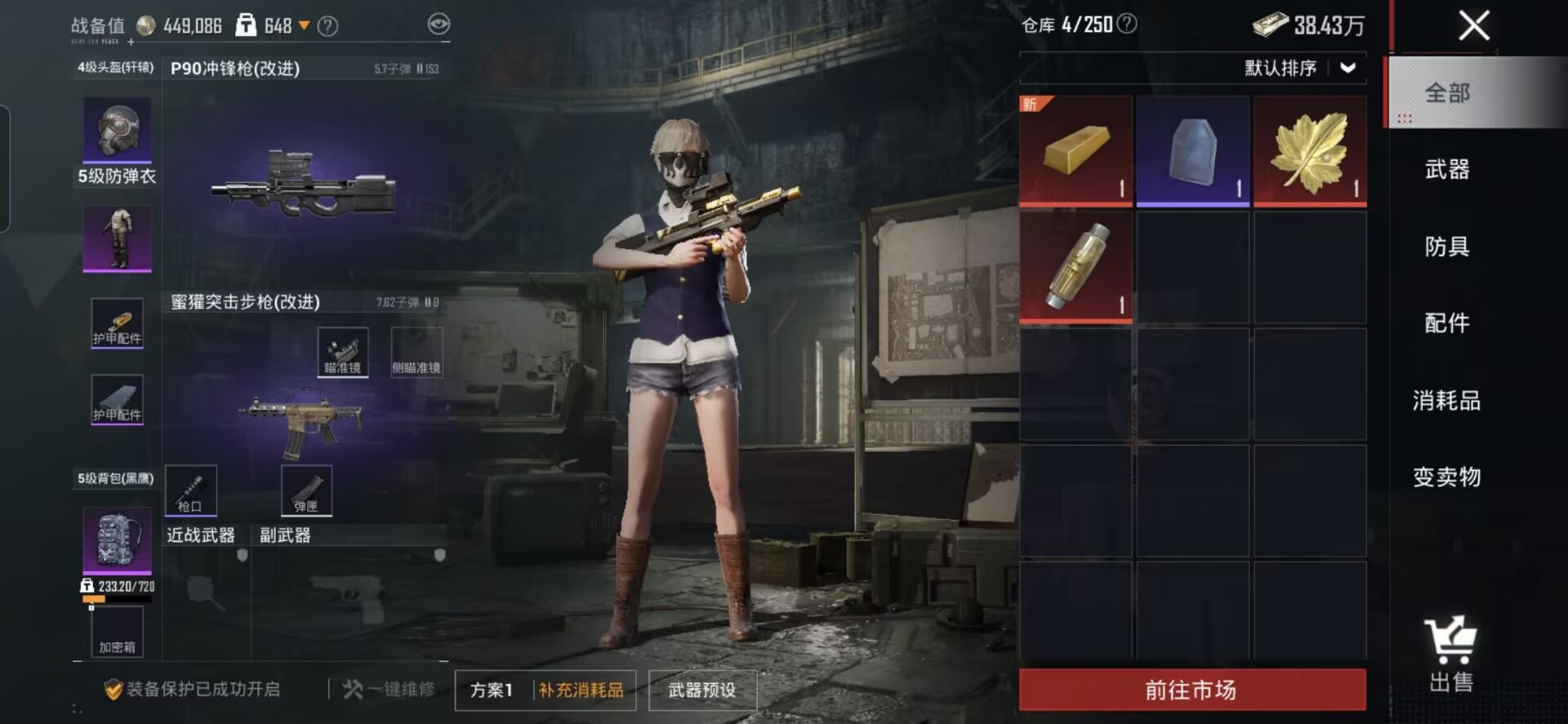 【特价出售】2王牌印记-2特效枪-73枪皮-44套装-1载具 【1载具】 迈凯伦570S(天际蓝) 【2特效枪】 DP-28-豹影疾电 Kar98K-巳巳如意 【2飞行器】 炫彩糖果飞行器 空岛之星尾迹 【9头盔】 圣堂之誓头盔(3级) 萌鸡速递头盔(3级) 粉黛兰香头盔(3级) 炫彩糖果头盔(3级) 玉兔迎春头盔(3级) 异域银装头盔(3级) 蝶变头盔(3级) 冰河战士头盔(3级) 海盐豹豹头