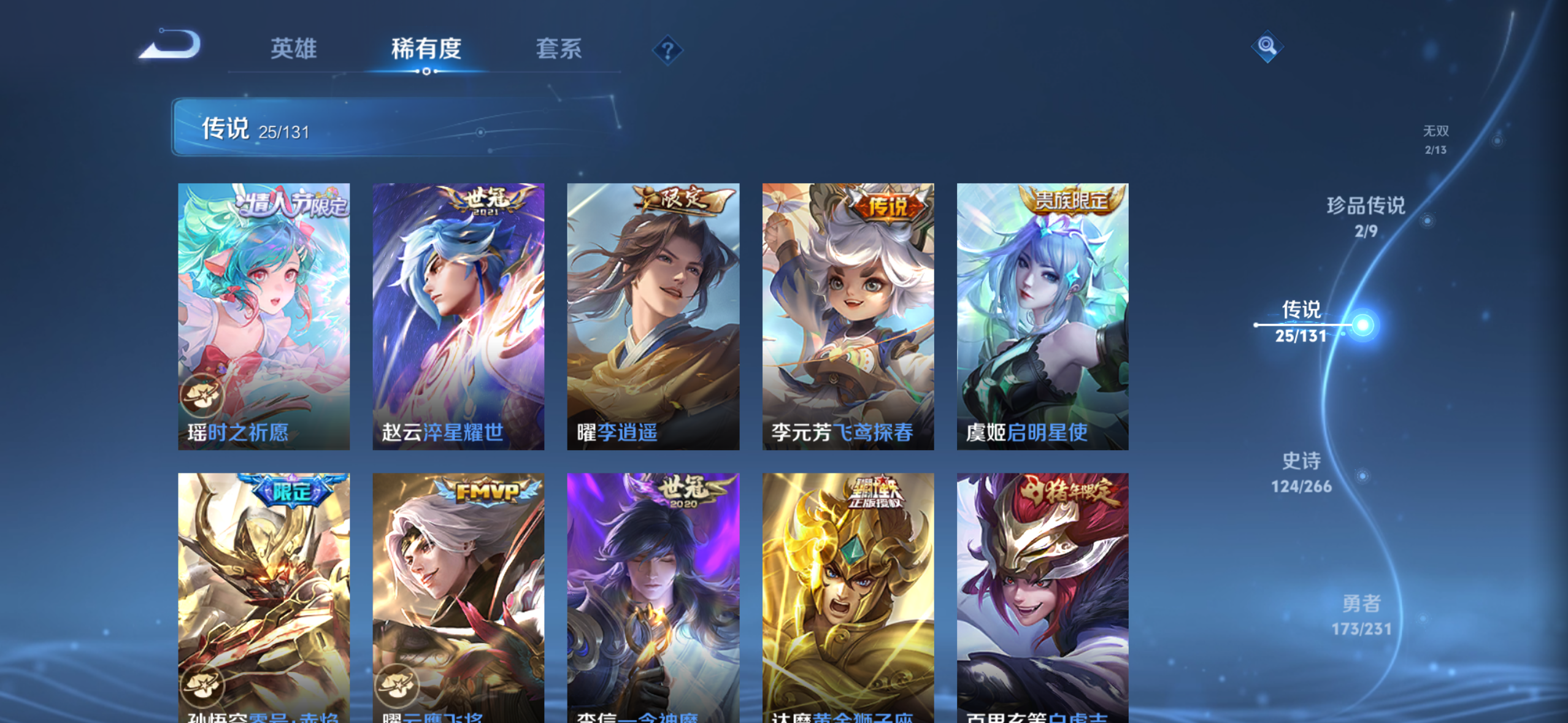 国服虞姬有梅西白虎志至尊宝神奇女侠和小兵皮肤一共三个典藏