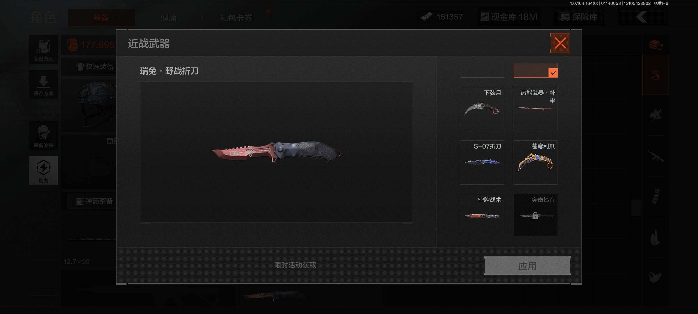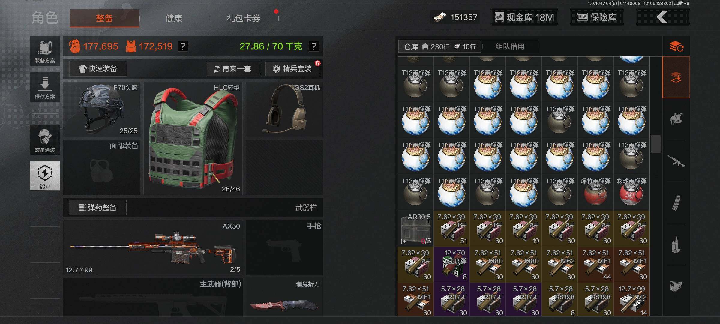 等级:30/段位:暗区传说/仓库价值(百万):50/柯恩币:18000000/瑞兔折刀/