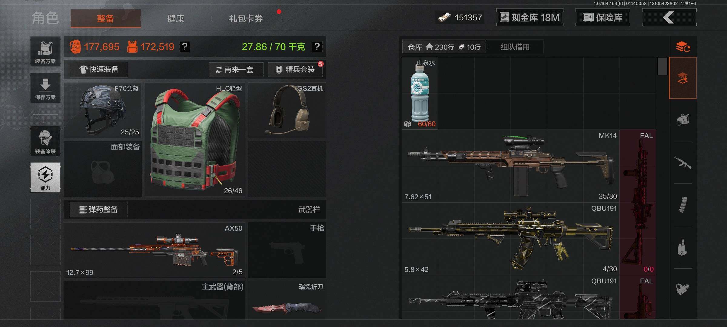 【AQZG978】等级:30/段位:暗区传说/仓库价值(百万):50/柯恩币:18000000/瑞兔折刀/下弦月/S-07折刀/苍穹利爪/空腔战术/热能武器补牢/使徒欧瑞恩/冥河/白蔷薇斯黛拉/深潜行者II/火绒塔莉娅/蓝色咆哮H416/伦琴幻影AX50栓动步枪/冰河碎影MK14/利齿风暴MPX/浮鳞影青QBZ192/乌金黑曜QBZ192/战术大师AEK/竞技FAL/旗帜AEK/芭斯特/SORMK14