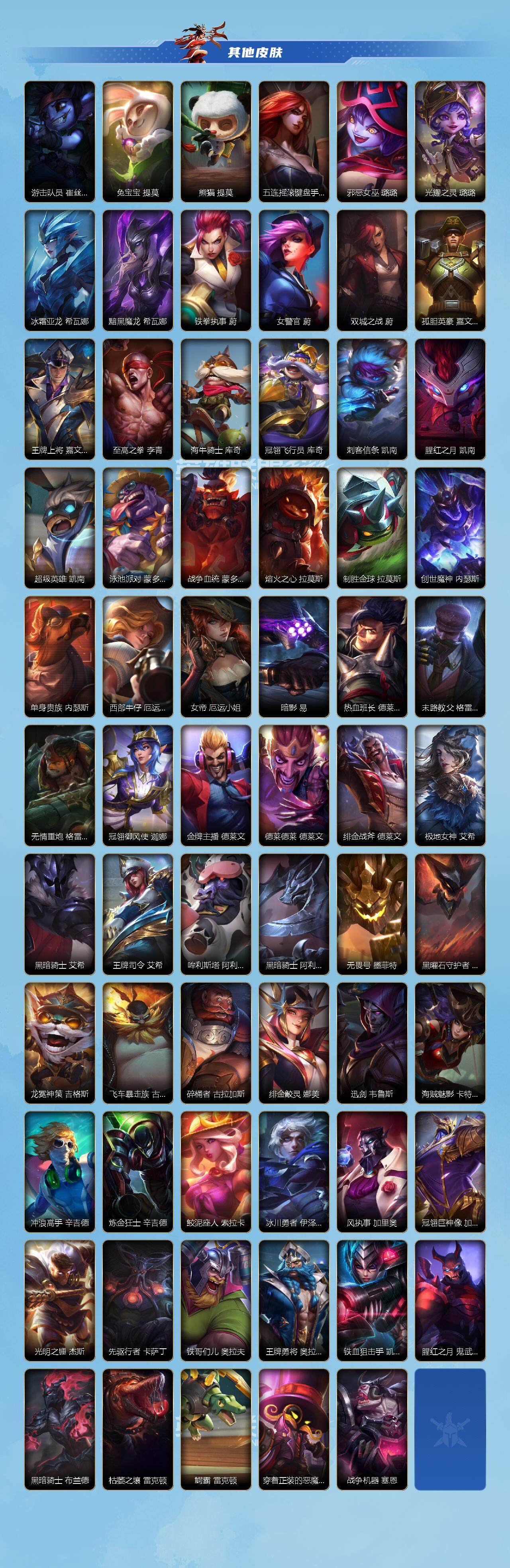 【LOLSYH41】133英雄/231皮肤/傲世宗师/夜星流火 金克丝/龙的传人 李青/至臻 灵魂莲华 易/赵云 子龙 赵信/神王 盖伦/心之钢 凯隐/光明哨兵 薇恩/北极星神 黛安娜/星之守护者 金克丝/暗星尊 烬/星域游侠 崔斯特/魔女 伊芙琳/K/DA ALL OUT 萨勒芬妮/黑夜使者 亚索/星之守护者 阿狸/天煞 劫/西部魔影 卢锡安/日蚀骑士 蕾欧娜/月蚀骑士 蕾欧娜/欧米伽小队 幽灵特工 提莫/神拳 李青/神龙尊者 圣龙 李青/律政大亨 蒙多医生/炼狱魔犬 内瑟斯/福牛守护者 厄运