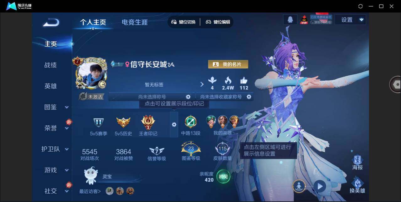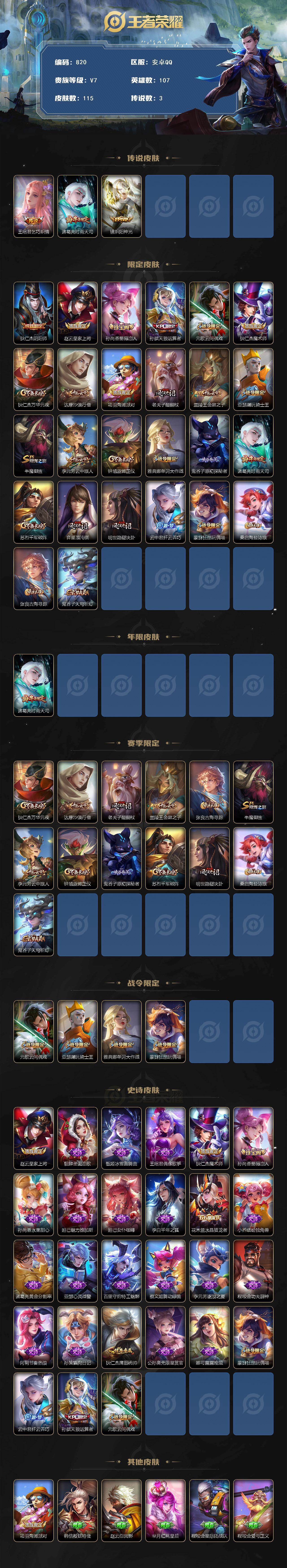 1963536 王者荣耀账号 安卓Q-V7-秩序白银II段位-107英雄-115皮肤-3传说-27史诗