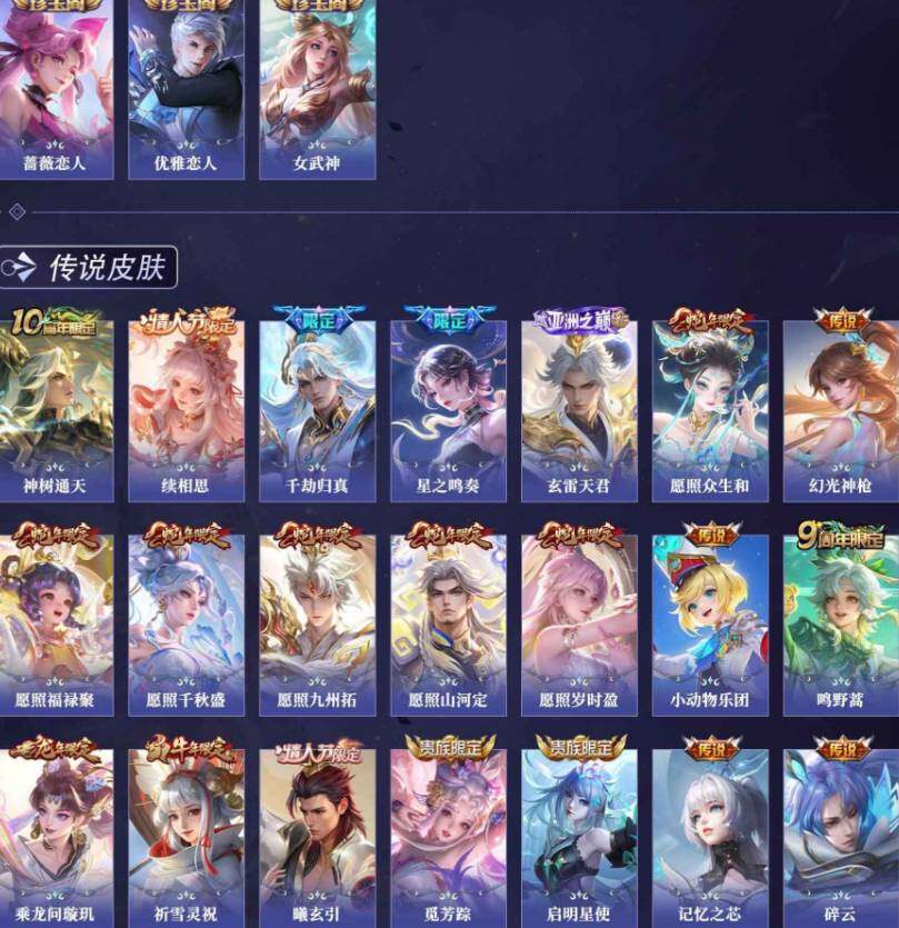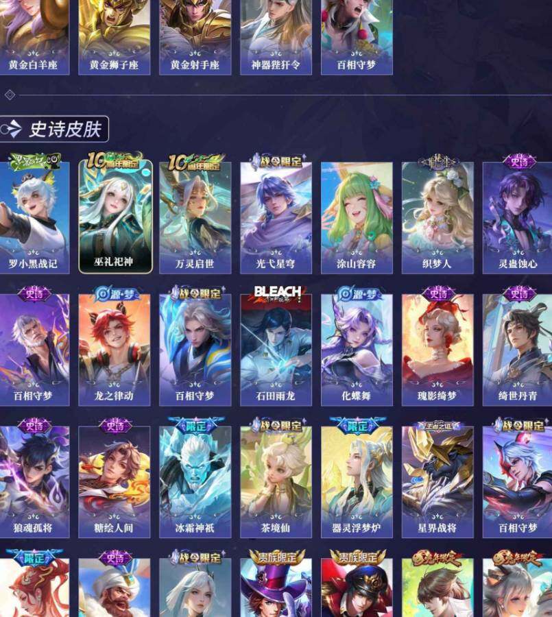 安卓Q-V10-最强王者段位-127英雄-456皮肤-6典藏皮肤-1无双-3珍品传说-61传说-141史诗
