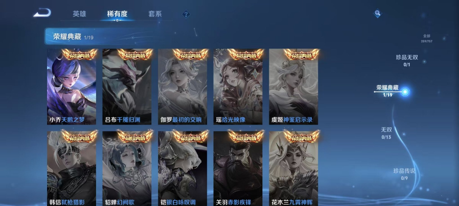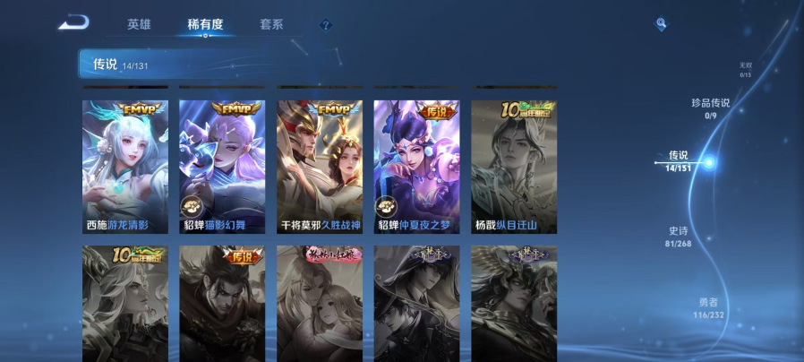 【女号 游走47段 259皮肤1水晶1星元14传说永久社交
