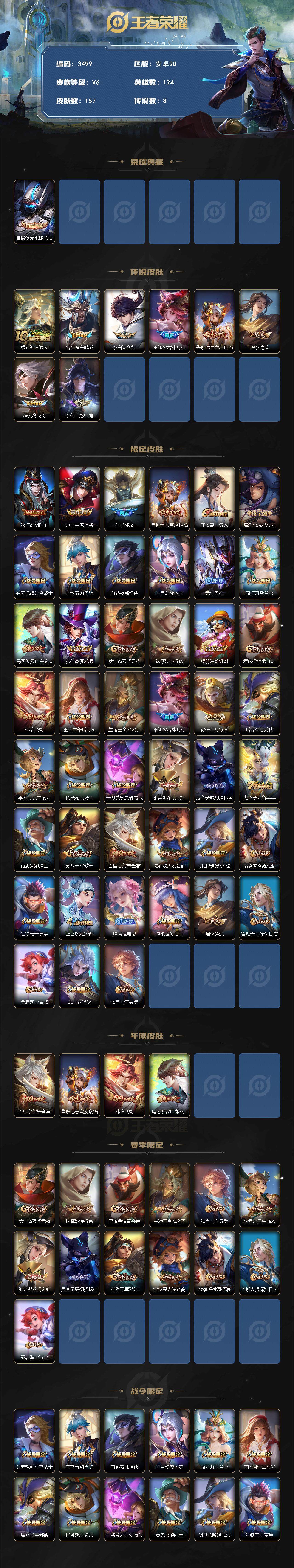 安卓Q-V3-尊贵铂金II段位-124英雄-157皮肤-1典藏皮肤-8传说-46史诗