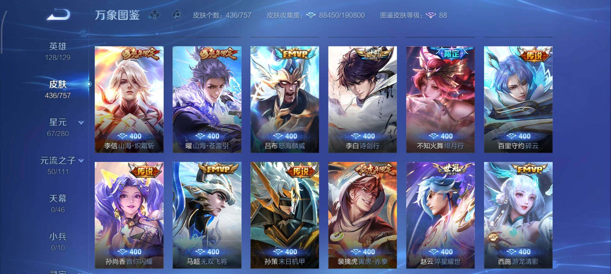 【店铺主推·无双V10·6.8W流光积分·4典藏+背包1水晶·6无双·7珍品·全皮沈梦溪·全皮元歌·瑶真我赫兹·时之魔女·破晓神光·怪盗基德·可二次】YXw11510-安卓Q-128英雄-436皮肤-9王者印记-300铭文-贵族积分25w【无双贵族10】【4典藏·6无双·7珍品·3星传说·60传说·118按键·138个性戳戳】【因赛季更新游戏段付以上号为准!】