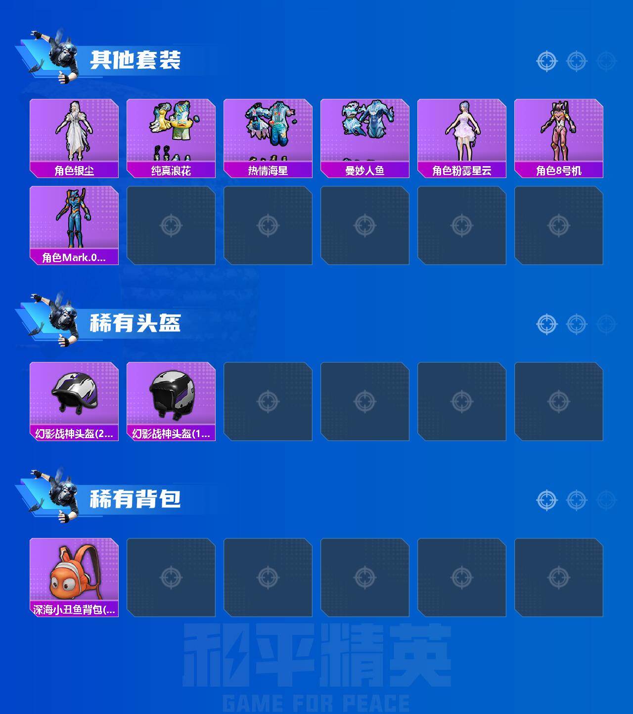 【热门品类】:套装-浪漫天命,套装-赤蝎幽灵,套装-深海小丑鱼,套装-奇异狩猎者,套装-龟仙人,套装-暗影哥特,角色-8号机,角色-Mark.06