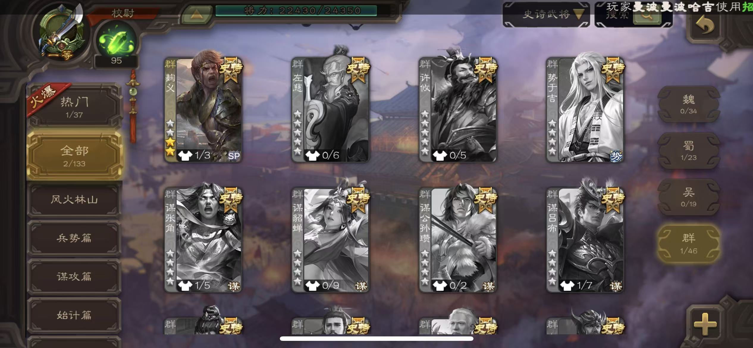 史诗武将数量: