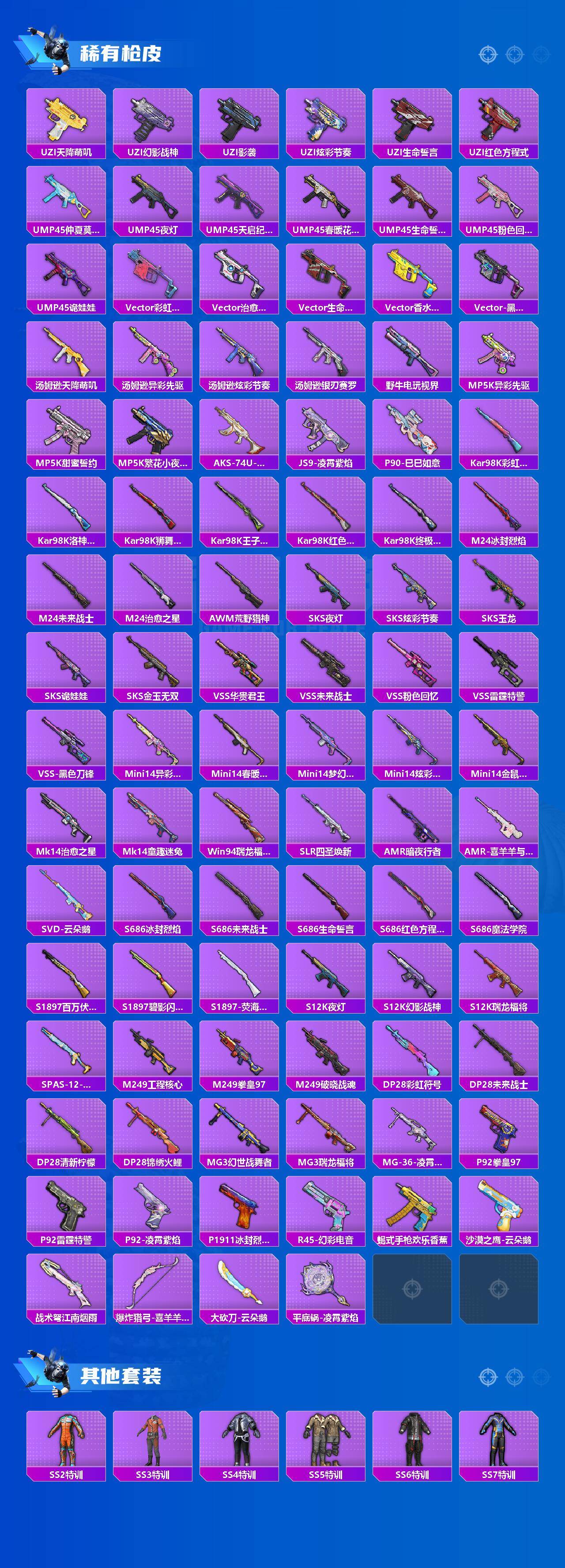 【A3616】苹果【小号 粉装-未来战士/粉装-古堡领主/粉装-银龙傲海/M416-风花雪月/Kar98K-巳巳如意/DP-28-豹影疾电】 手Q-7粉装-4特效枪-0载具-3粉色飞行器-66837热力值-6王牌印记-196套装-217枪皮