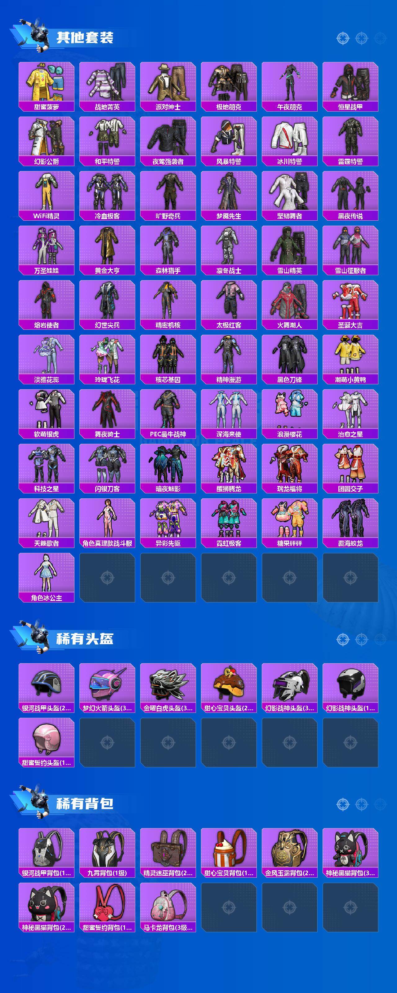 【粉色套装】:粉装-未来战士,粉装-古堡领主,粉装-银龙傲海,粉装-暗夜玫瑰,粉装-齐天大圣,粉装-花影阑珊,角色-异瞳寒姬