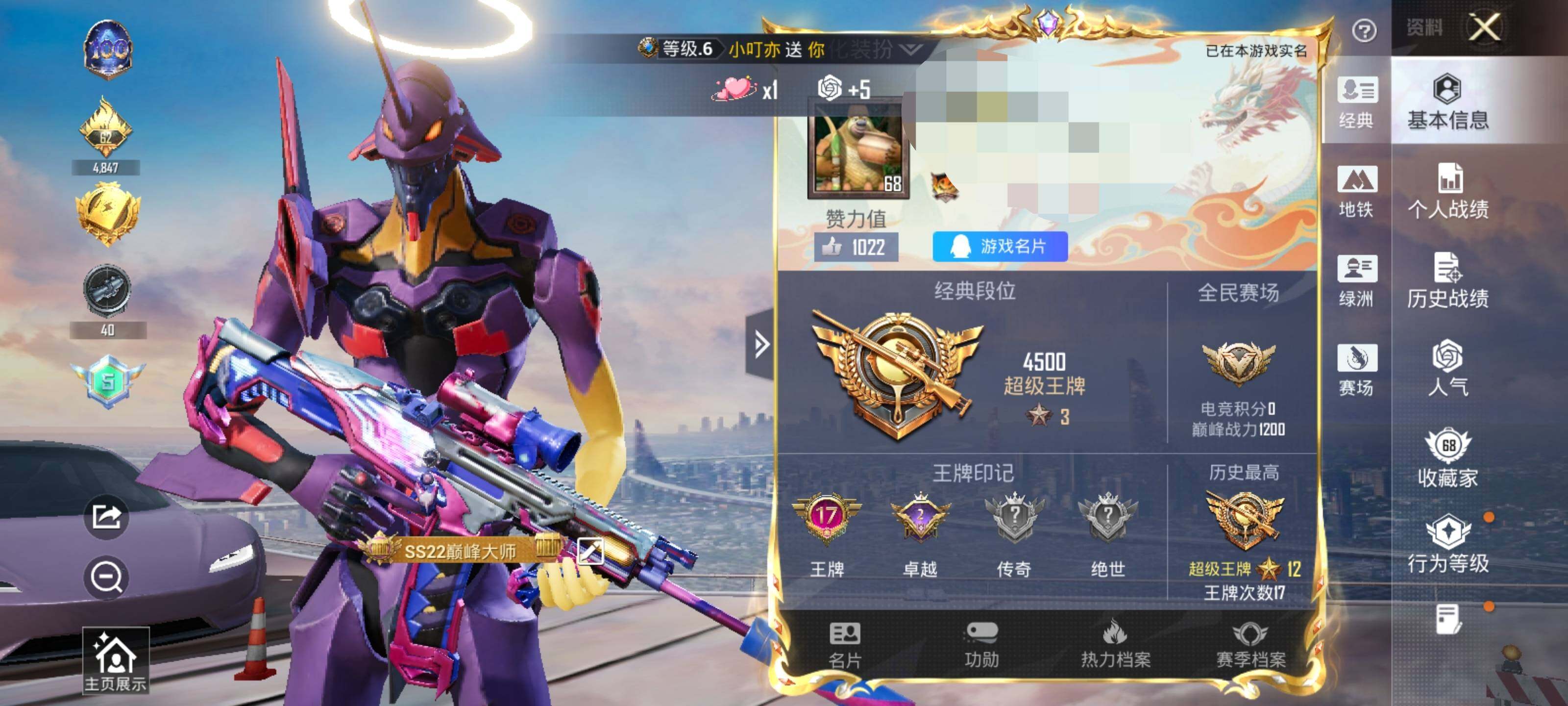 177套装/枪械8/装备274/载具1/战备188/王牌印记17/热力值75646/