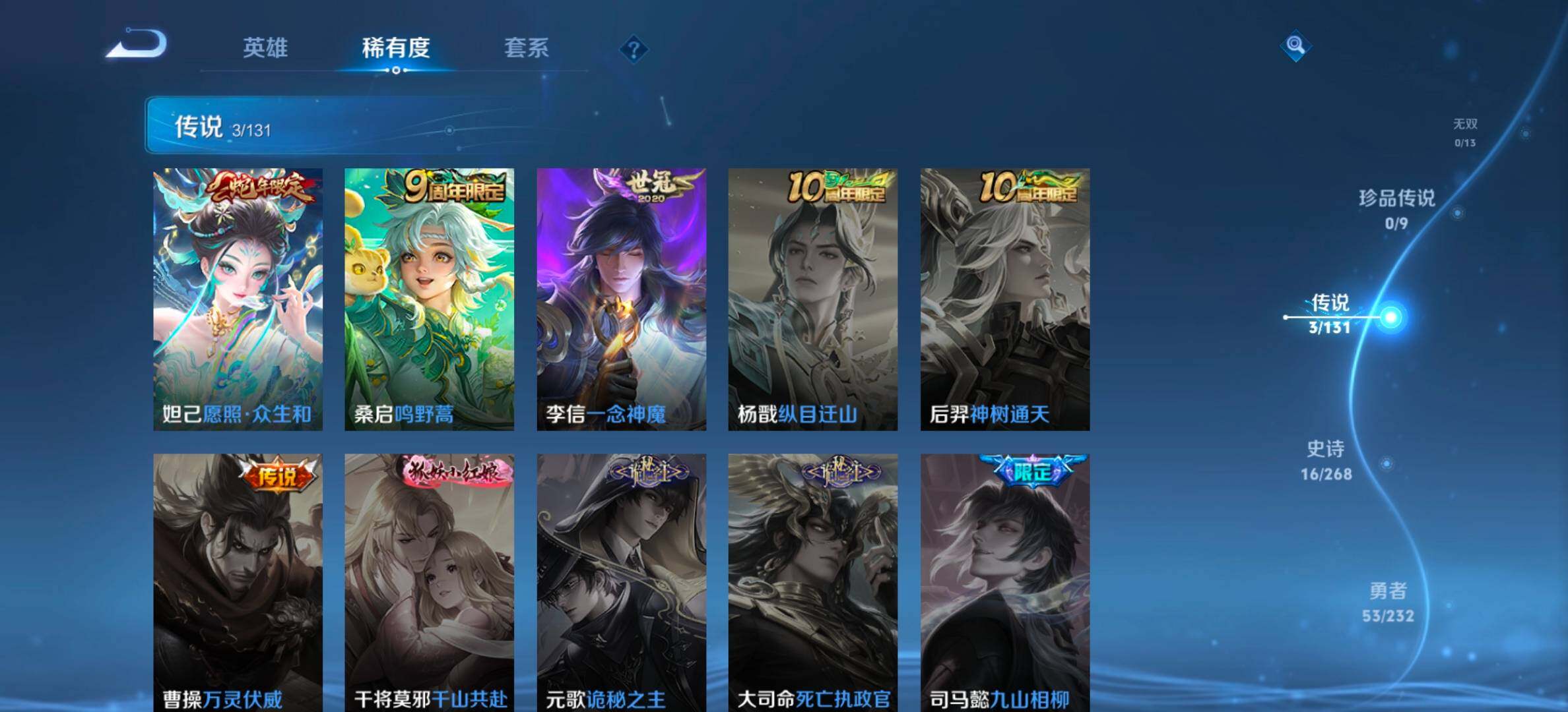 【传说皮肤】:妲己愿照众生和,桑启鸣野蒿,李信一念神魔