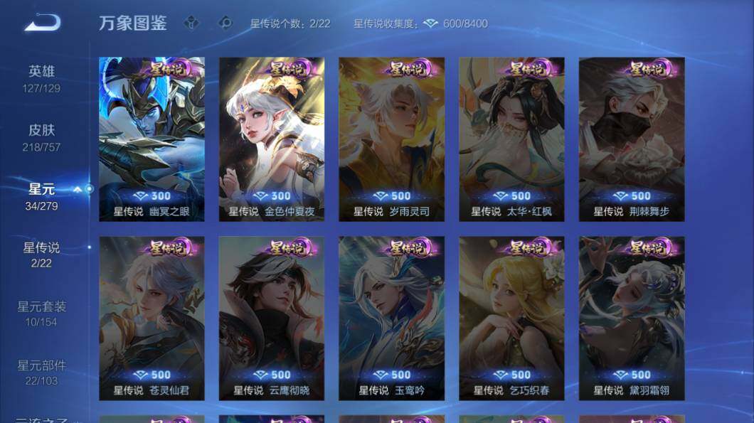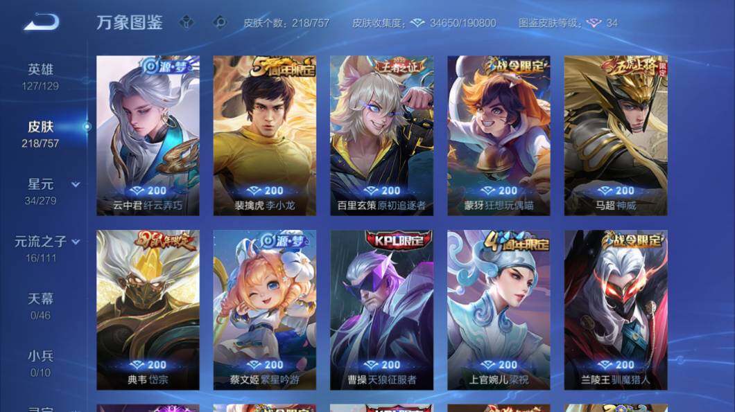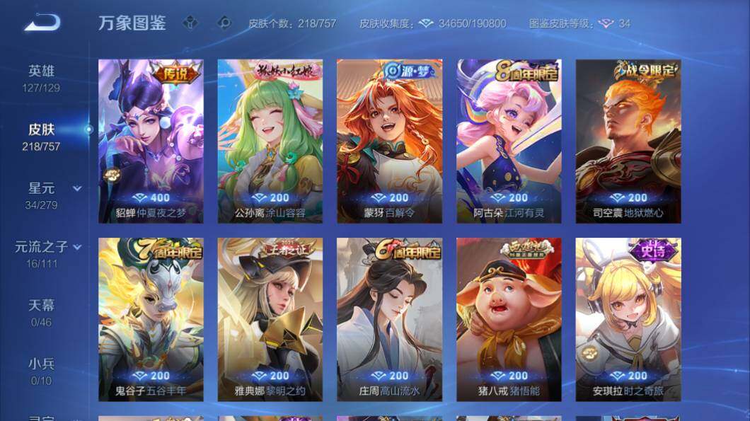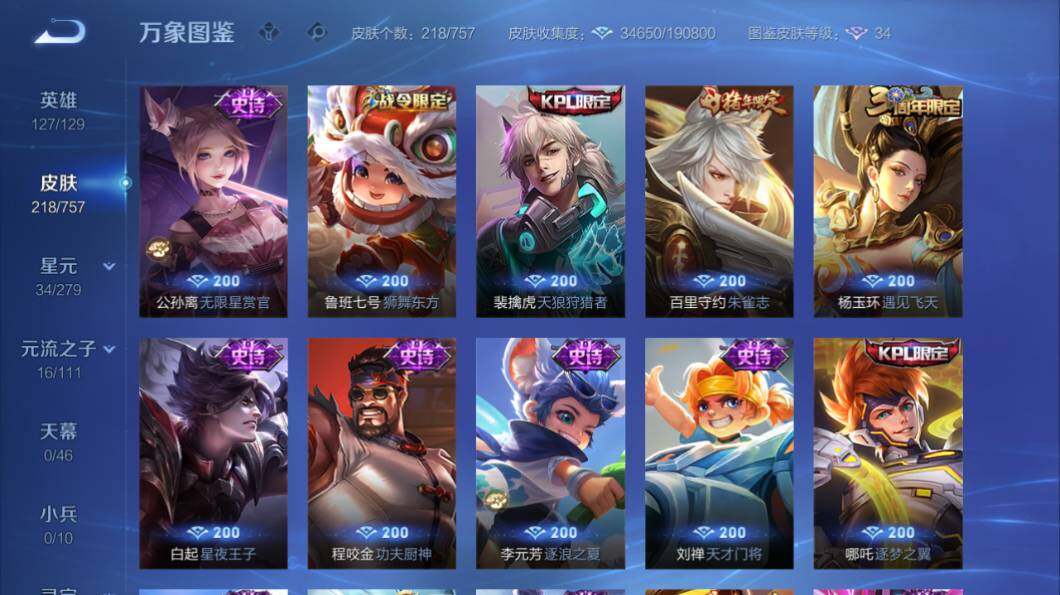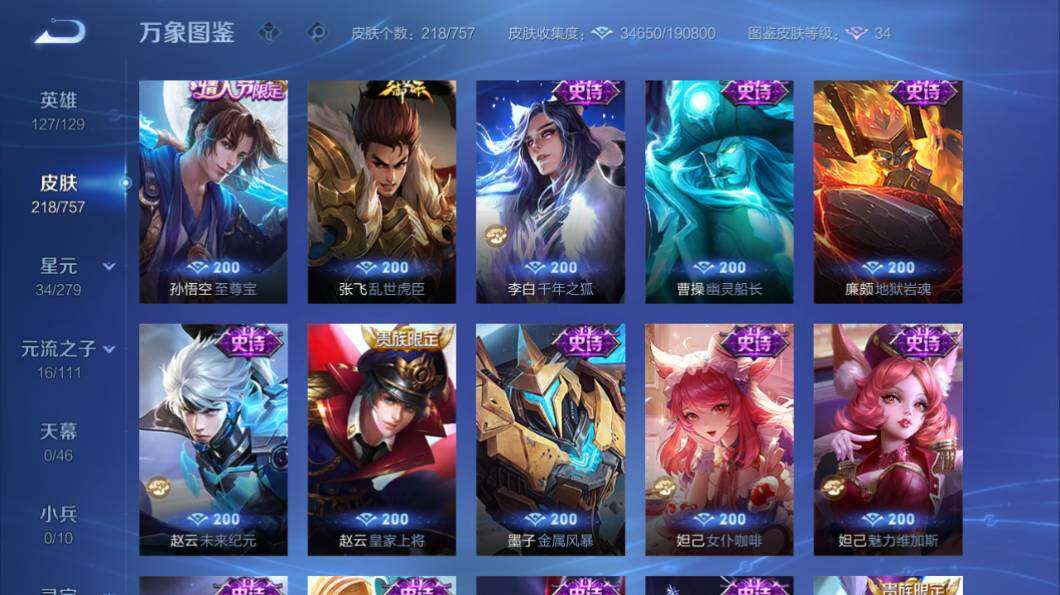 苹果Q-V7-127英雄-218皮肤-2典藏皮肤-14传说-68史诗-2星传说