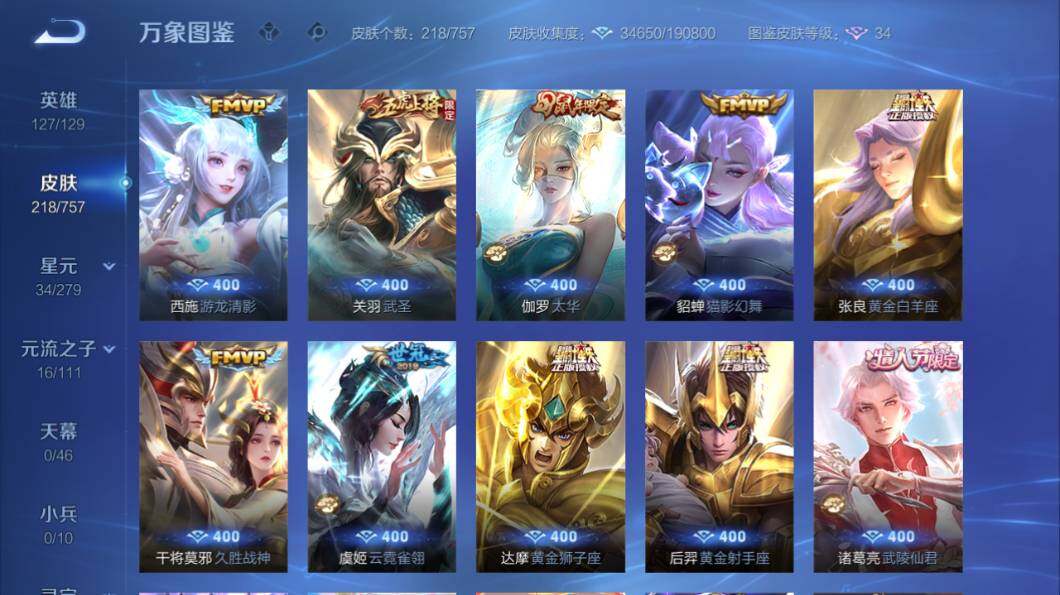 苹果Q-V7-127英雄-218皮肤-2典藏皮肤-14传说-68史诗-2星传说 很多限定皮肤