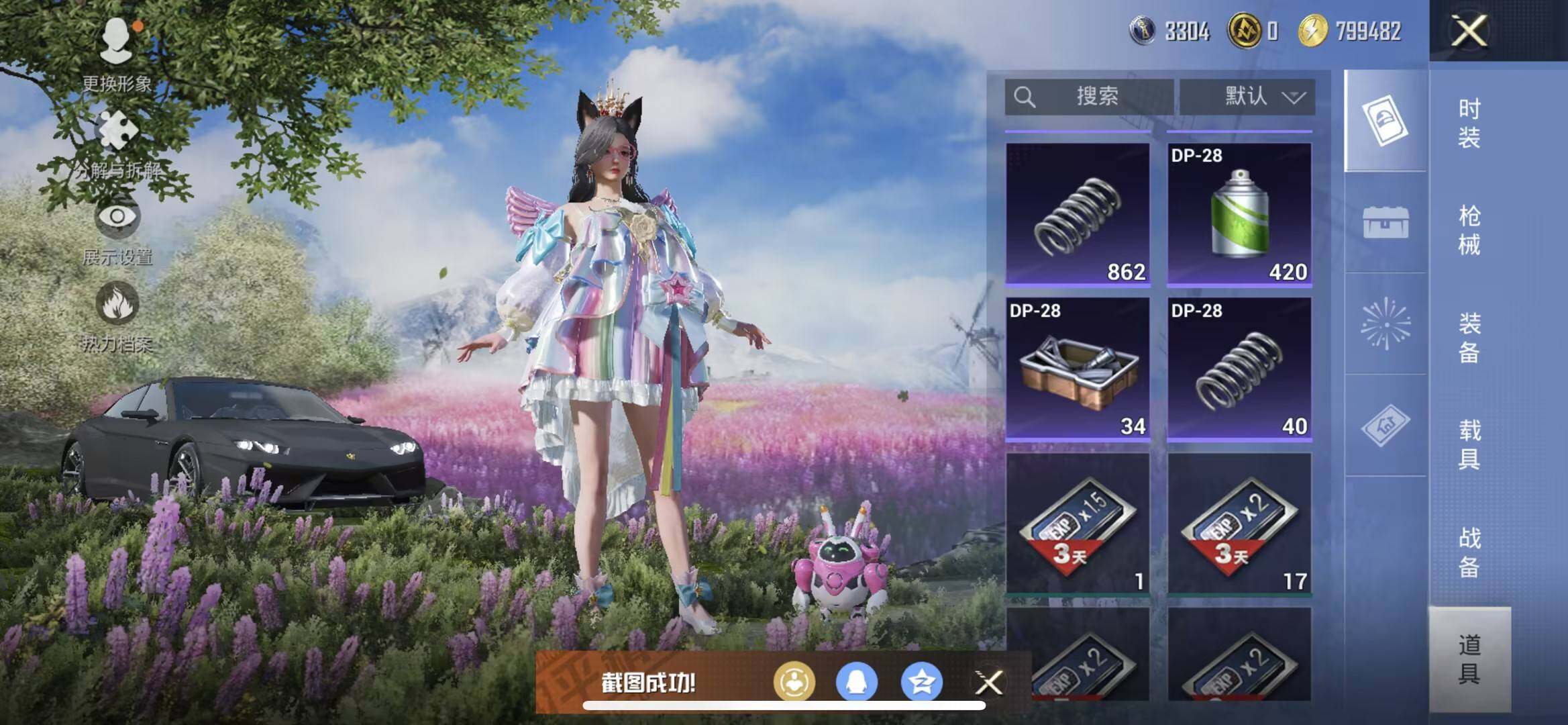【粉色枪皮等级】:Kar98K-巳巳如意(五级),M417-第五大道(七级),DP-28-豹影疾