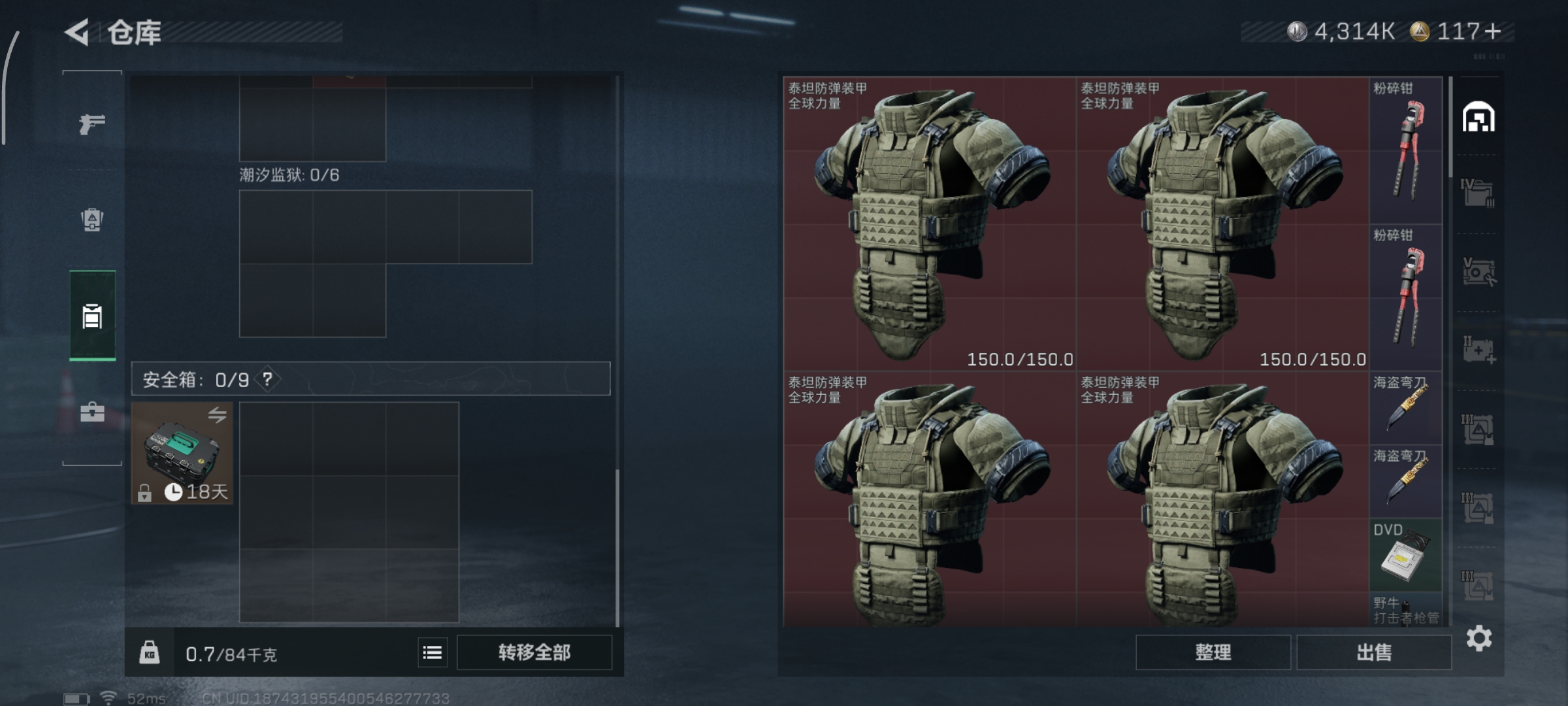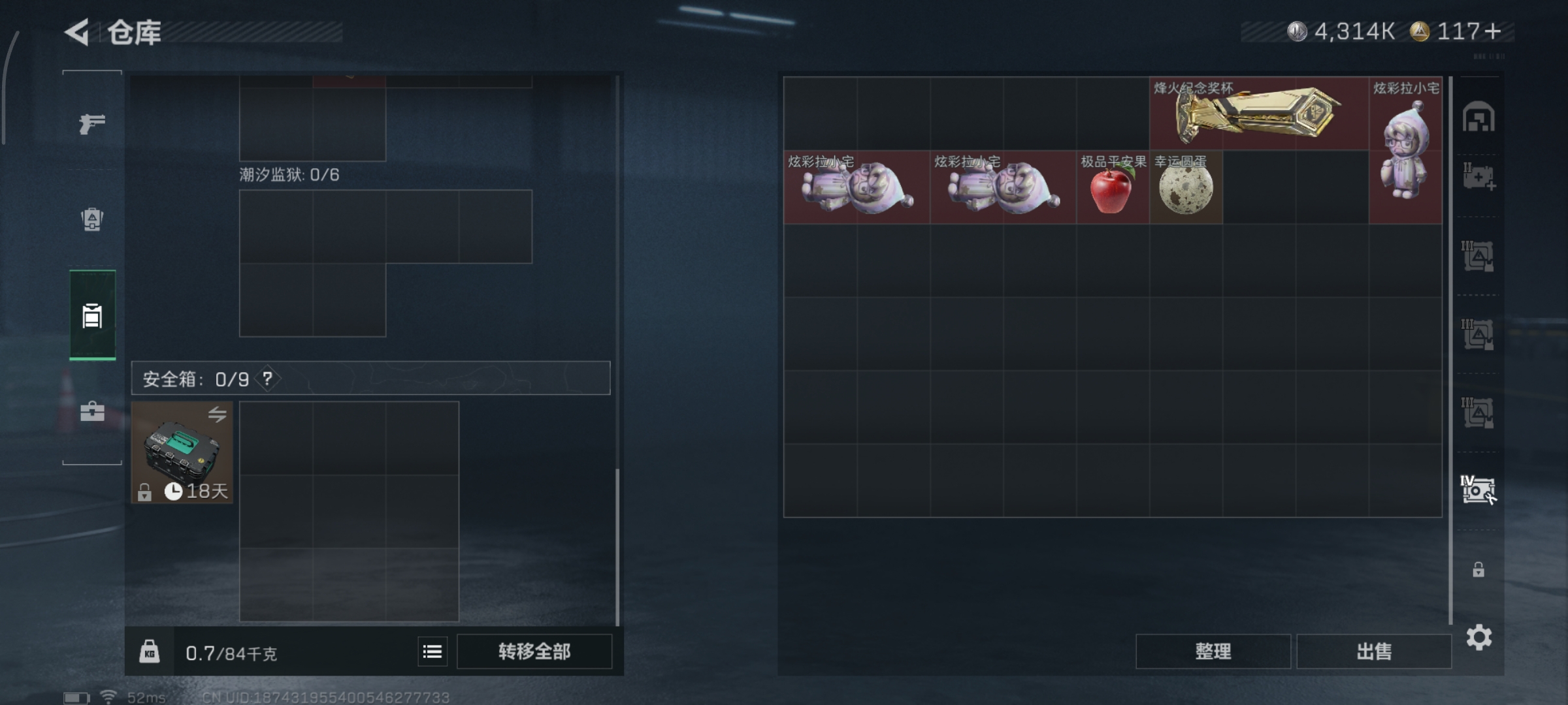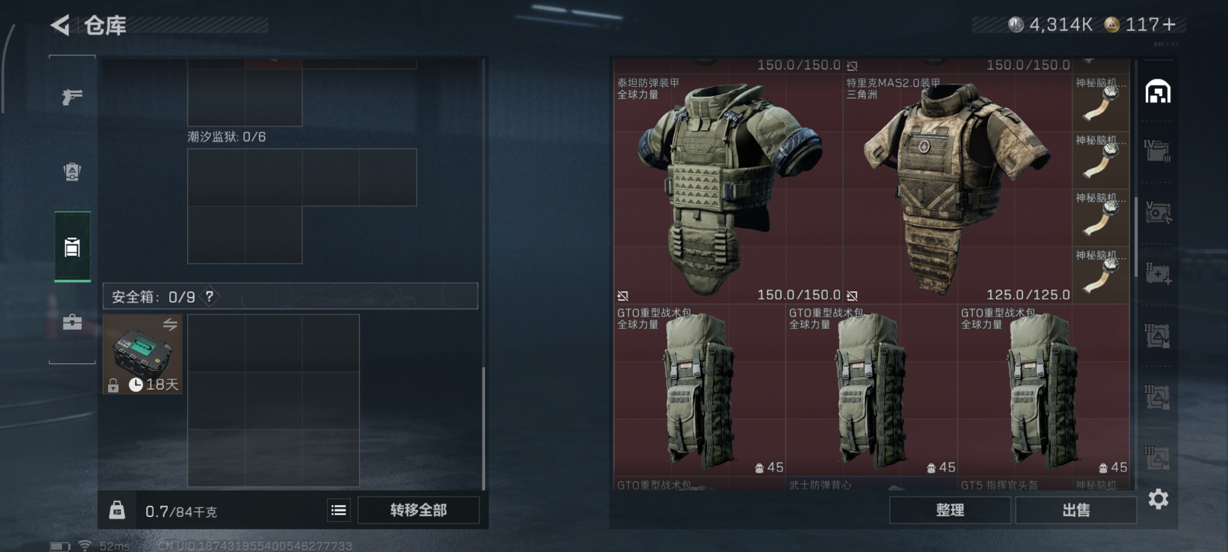 【总资产(M)】104.69【哈夫币】4314k【行动等级】60