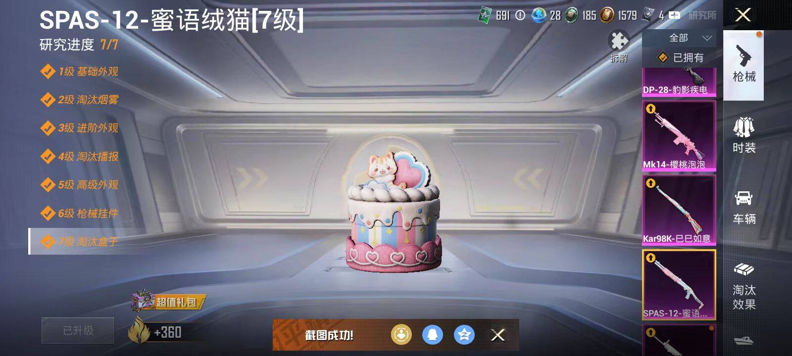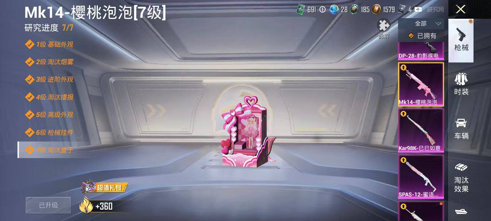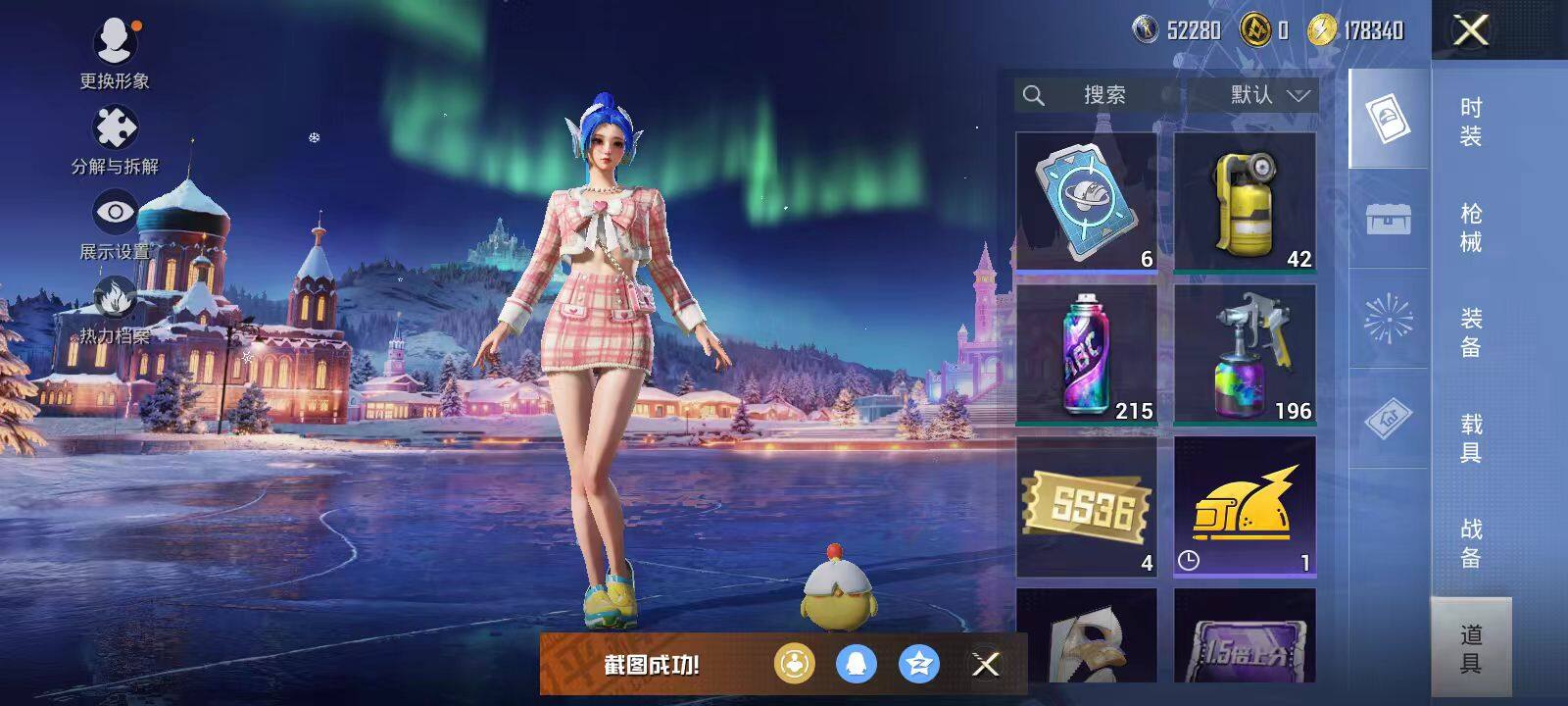 安卓 手Q-6粉装-5特效枪-0载具-4粉色飞行器-62792热力值-10王牌印记-183套装-198枪皮