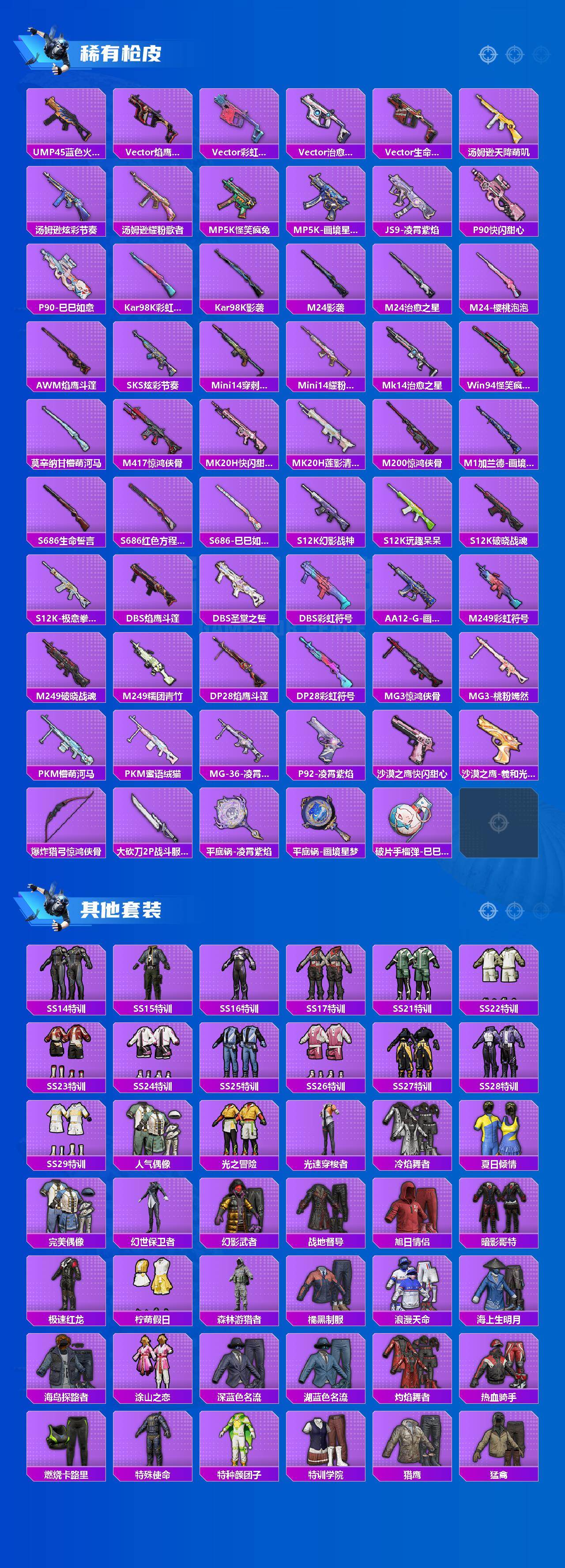 【粉色枪皮等级】:AKM-绿萝繁花(五级),SCAR-L-锦绣绵绵(五级),M416-电玩时刻(五级),AUG-暖羊咩咩(五级),UMP45-量子极
