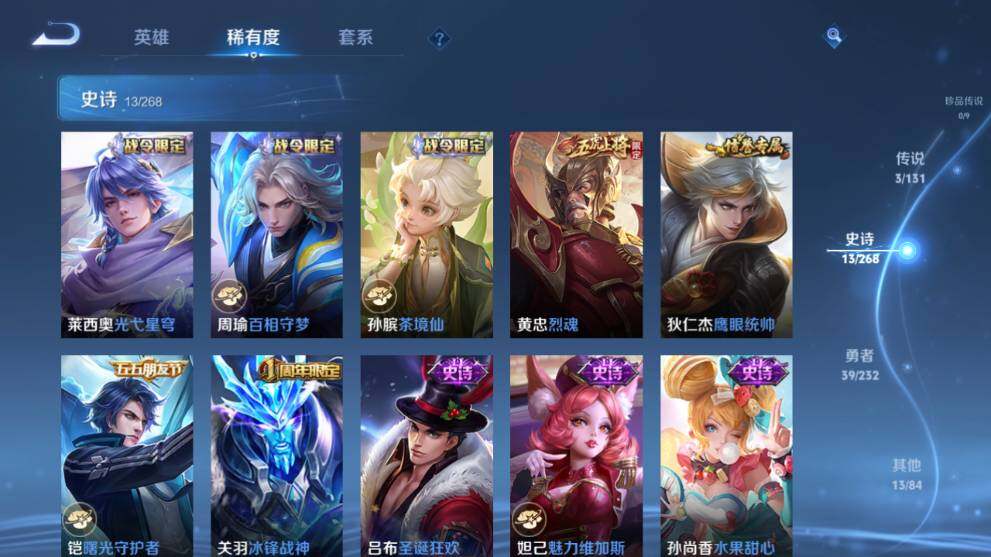 【史诗】赵云皇家上将,貂蝉圣诞恋歌,王昭君偶像歌手,孙尚香水果甜心,妲己魅力维加斯,吕布圣诞狂欢,关羽冰锋战神,铠曙光守护者,狄仁