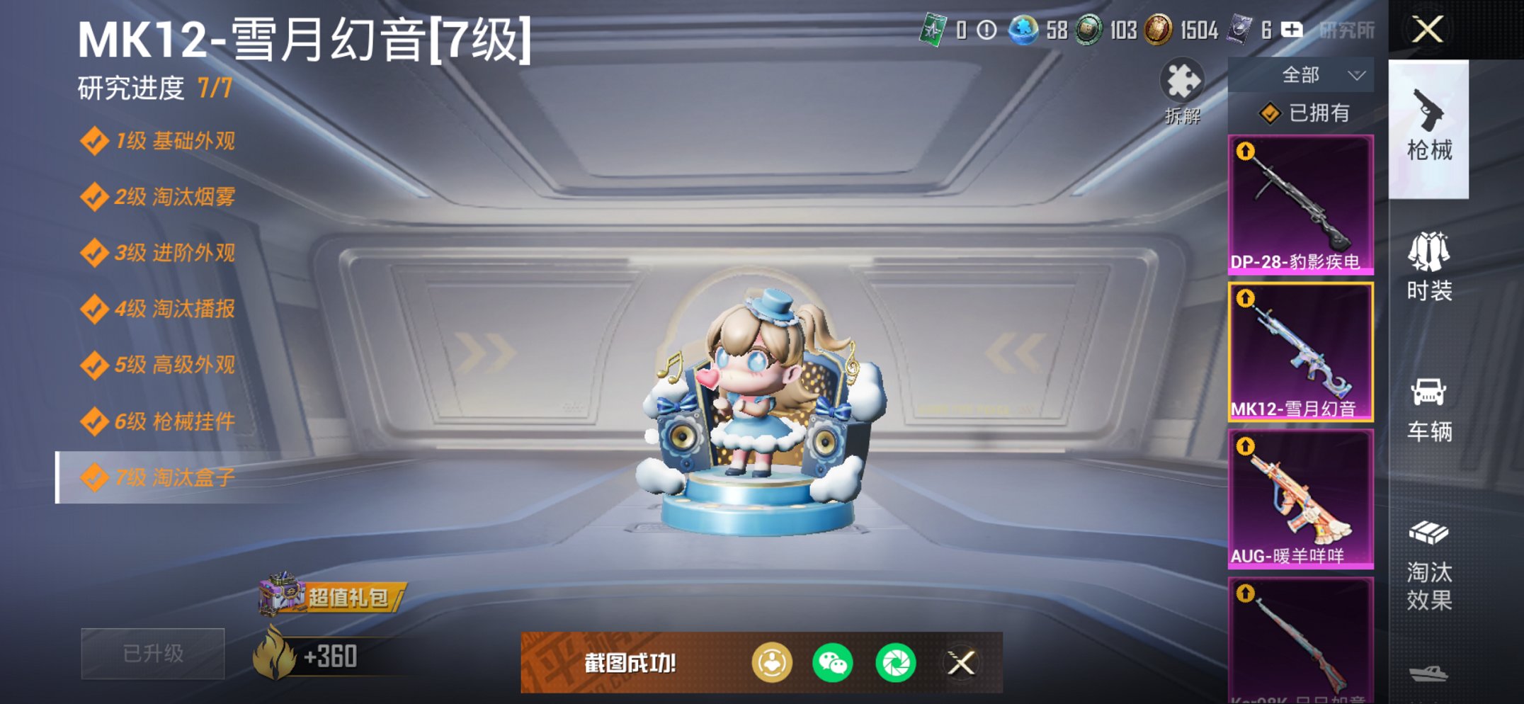 553-【都市猎人4特效枪浪漫天命红眼罩、V社交、游戏正常】、苹果V区-17875热力值-5印记-51套装-72枪皮、【1稀有】、都市猎人【4特效枪】、MK12-雪月幻音(7级)、Kar98K-巳巳如意(5级)、AUG-暖羊咩咩(5级)、DP-28-豹影疾电(5级)【24热门】、浪漫天命、破蛋小黄鸡、暗影哥特(红眼罩)、狂沙舞者、白色伏地魔、SCAR-L-玉兔迎春、M762-天降萌叽、M762-彩虹符号、DBS-彩虹符号、MG3-幻世战舞者、M416-蓝色火焰、长空猛禽、弄潮海豚、特训学院、青年