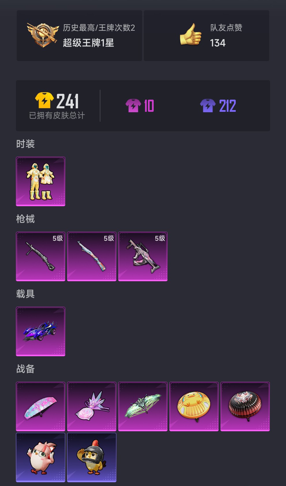 228-【3特效枪1载具1粉装、秒换绑不用等】、安卓Q区-21239热力值-2印记-50套装-74枪皮、【1载具】、海龙奔腾【1粉装】、垂柳戏鸭【3特效枪】、Kar98K-巳巳如意(5级)、GROZA-镜光银凌(5级)、DP-28-豹影疾电(5级)【19热门】、AKM-缤纷海域、SCAR-L-玉兔迎春、Mk47-乌木金纹、UZI-娇憨猪猪、UMP45-蓝色火焰、MG3-幻世战舞者、长空猛禽、虚音幻奏、甜心亚梦、特训学院、青年教官、魅力单车、猎鹰、蓝色运动、橘黑制服、黄色运动、红色运动、海岛探路者
