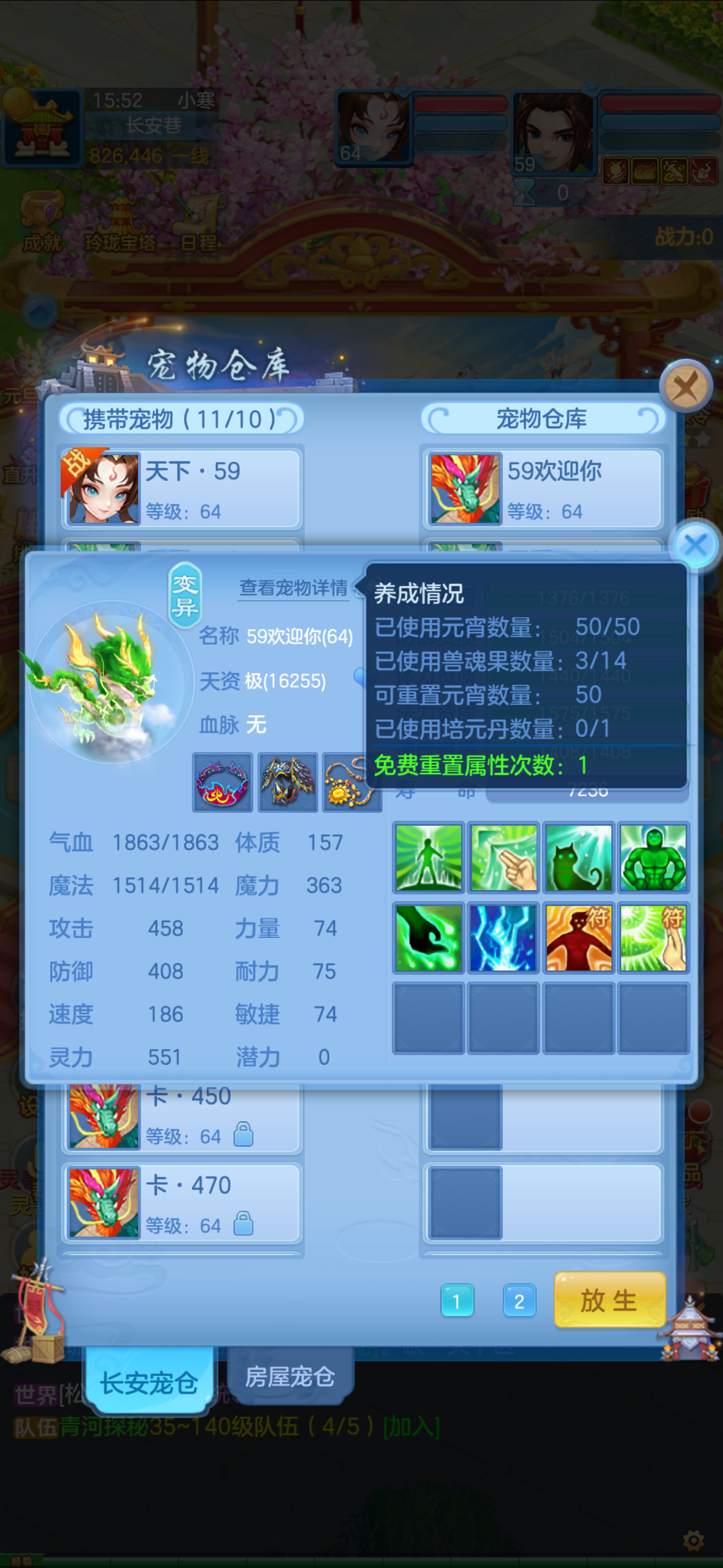 满配,320果子属性,宝宝都是高书成品,有蛇,有罗刹,详细看截图,装备也是极品属性,可骷髅,可血耐,可暴力,打架限制次数多