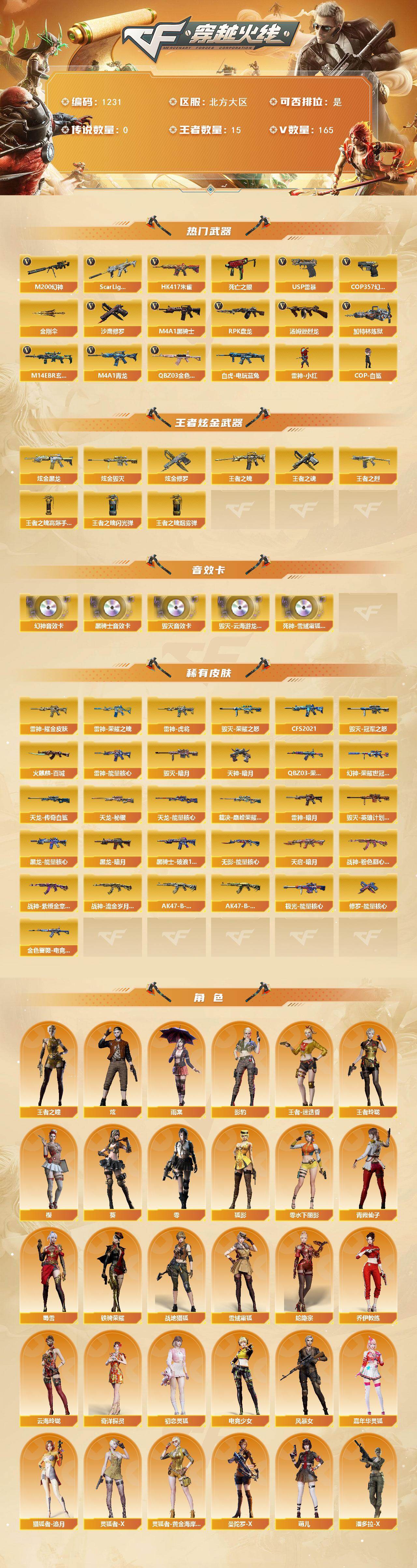 北方大区-165V-15王者-4炫金【热门武器】:QBZ03-金色蔷薇*3,