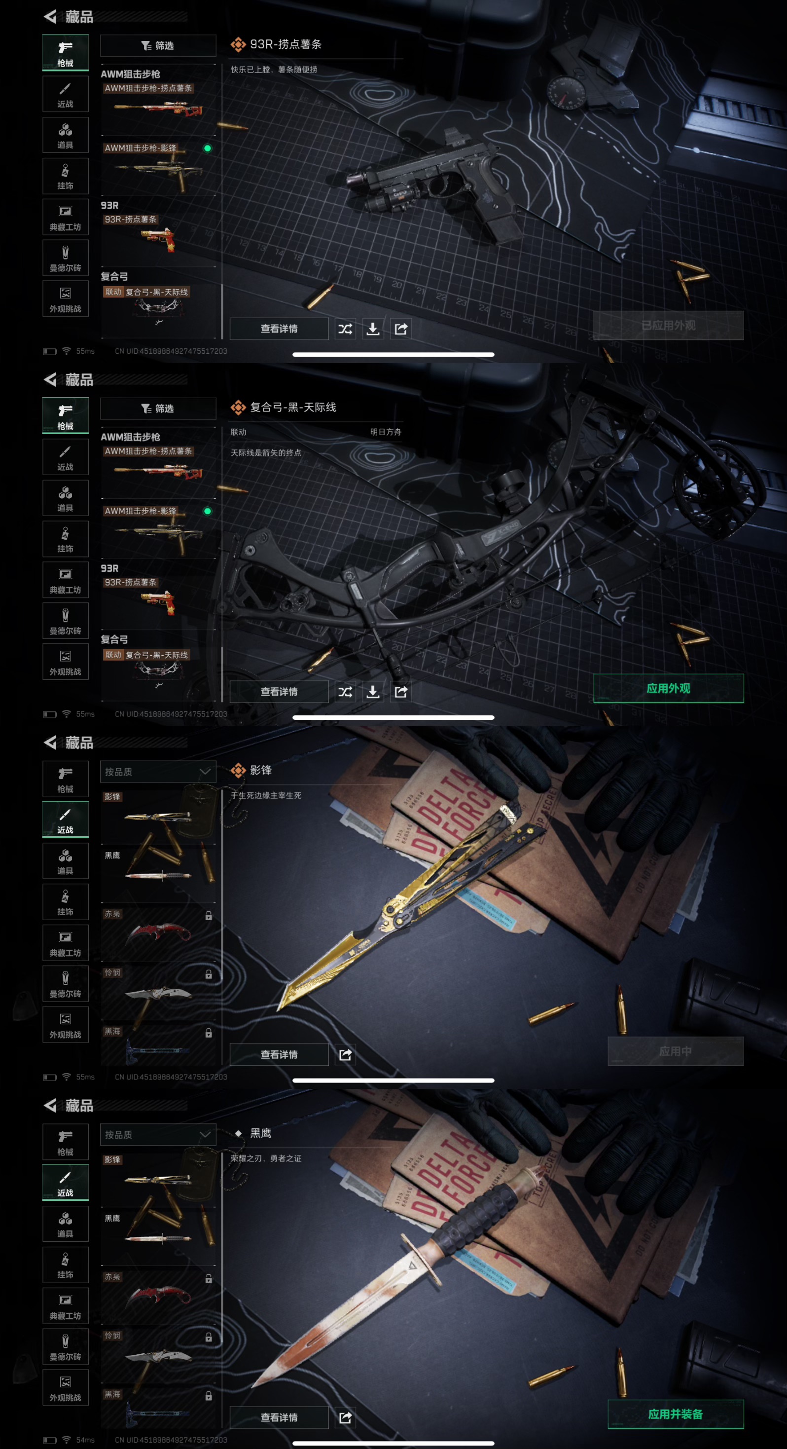WLSJZ582【满级号 蚀金玫瑰 影锋】三段互通Q-总资产193.7M-哈夫币20278K-烽火地带等级60-烽火地带段位:砖石Ⅳ【刀皮】 影锋 黑鹰【干员】蚀金玫瑰 壮志凌云 无题密令 街头之王 不破誓言【传说枪皮】M4A1突击步枪-蚀金玫瑰 M4A1突击步抢-阿米娅 ASh-12战斗步枪-鹅鸭杀 M7战斗步枪-维京 AK-12突击步抢-特新拉线圈 SCAR-H战斗步枪-启航 SCAR-H战斗步枪-铁艺苍穹 CAR-15突击步抢-阿米娅 腾龙突击步枪-捞点薯条 UZ1冲锋枪-特斯拉线圈 SM
