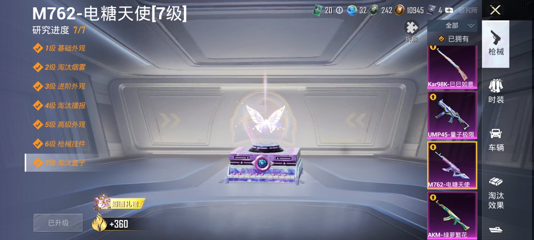 满级M762电糖天使4粉装5特效枪浪漫天命小丑鱼、秒换绑不用等