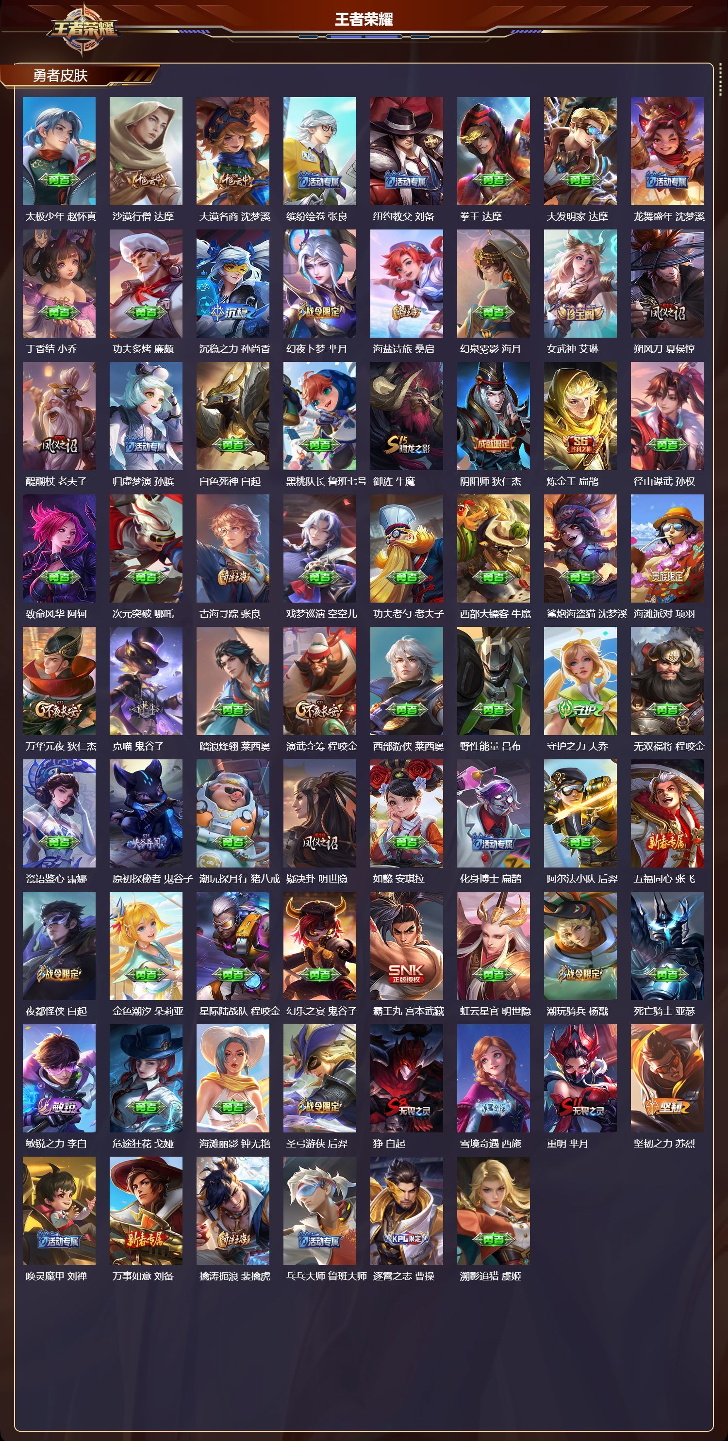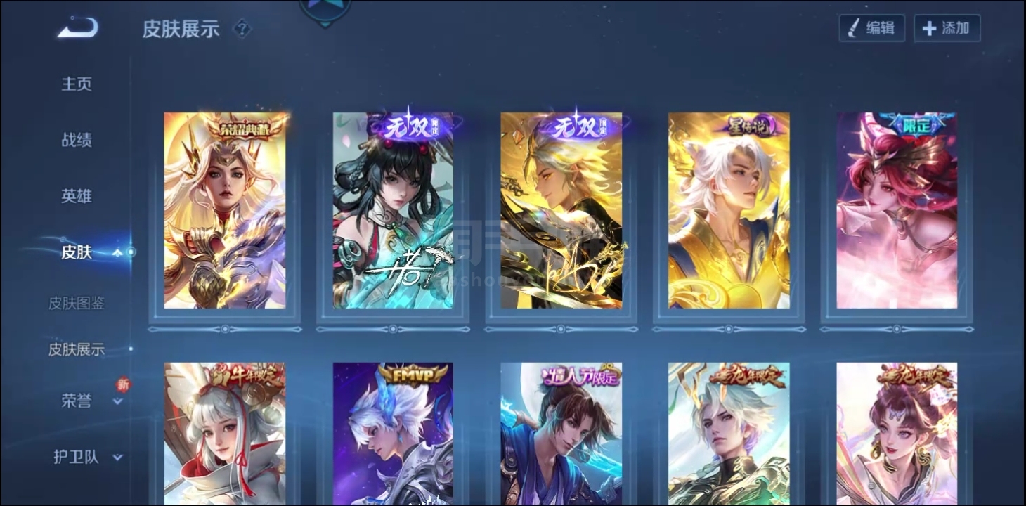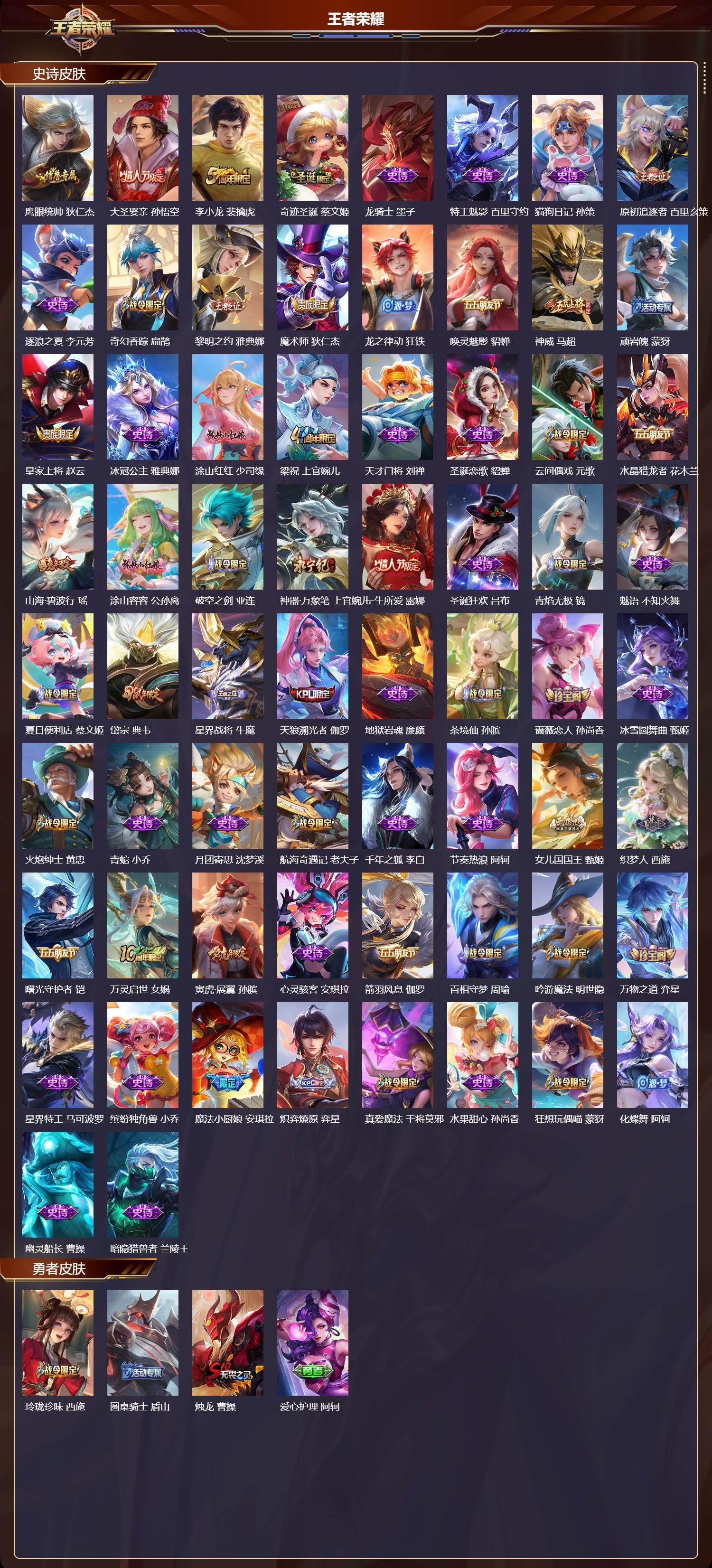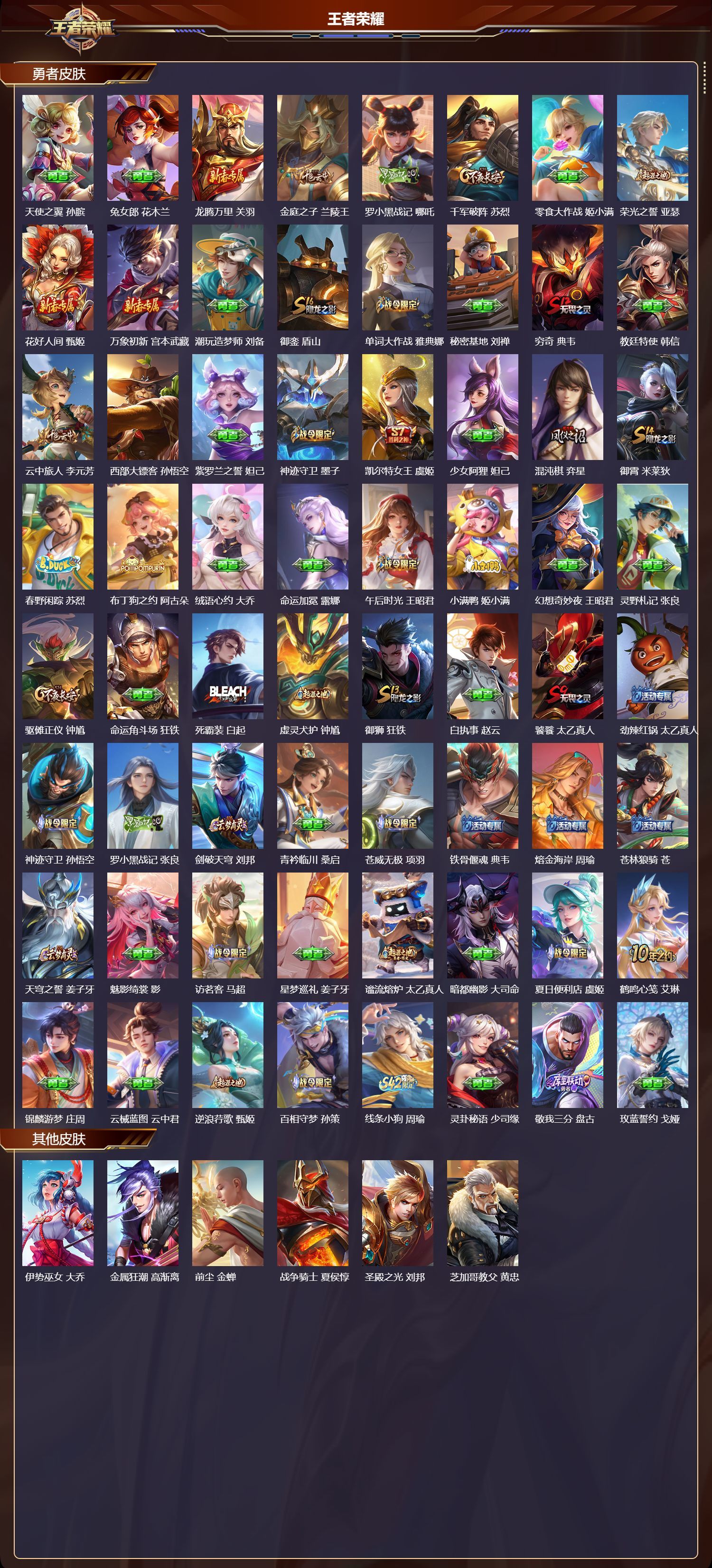安卓QQ/至尊星耀/332皮肤/127英雄/2典藏/1珍品无双/2无双/1珍品传说/24传说/106