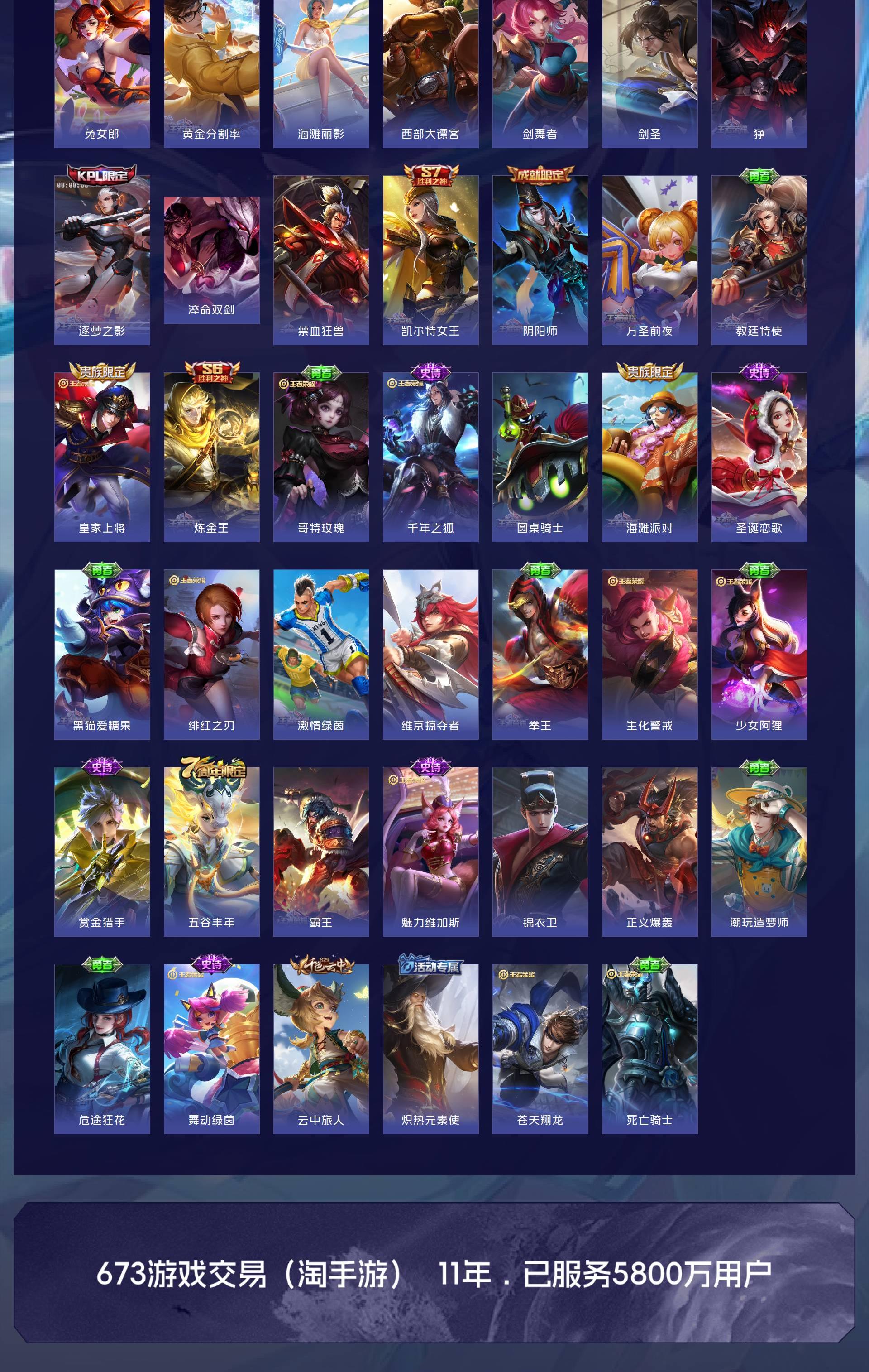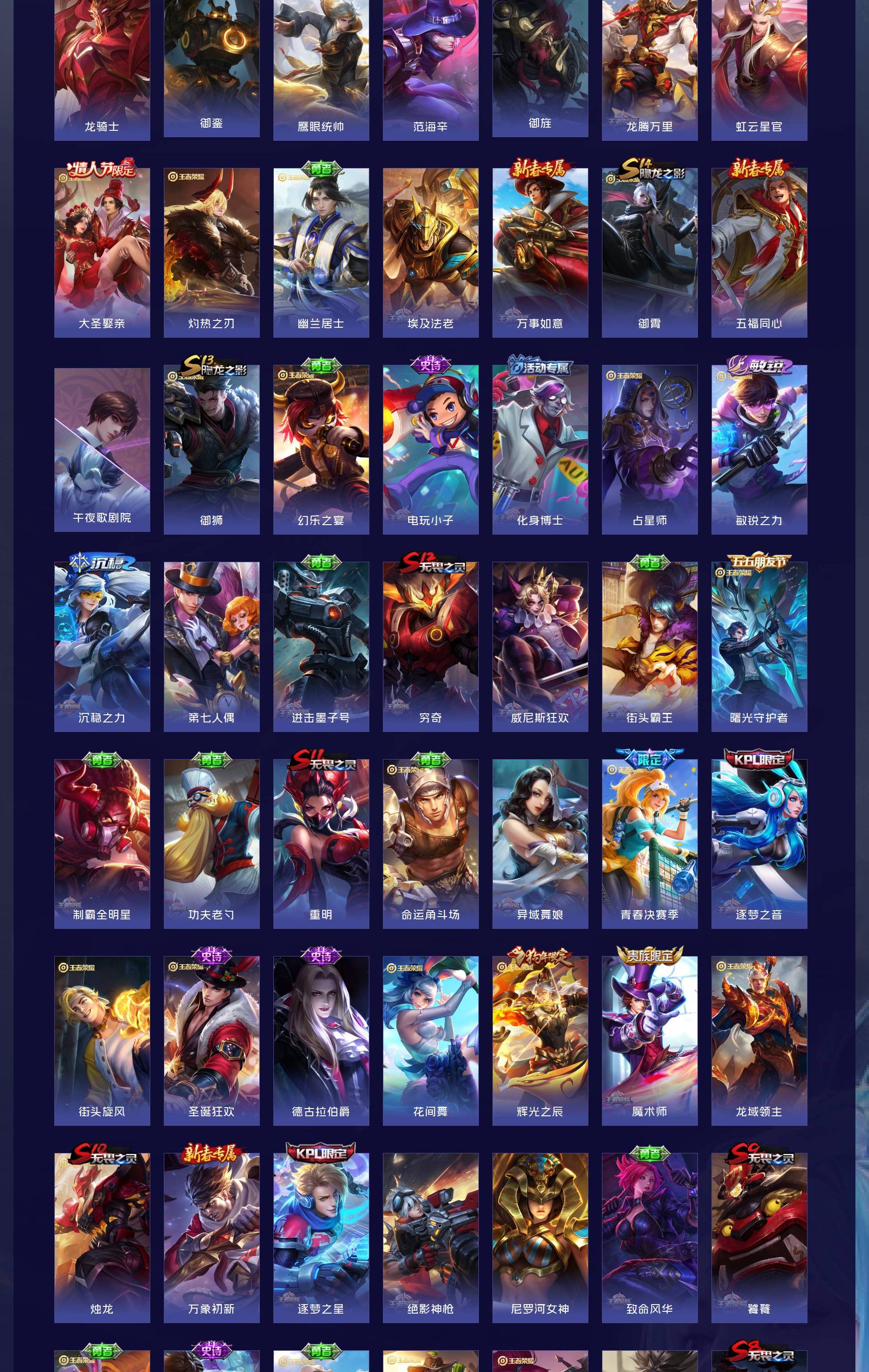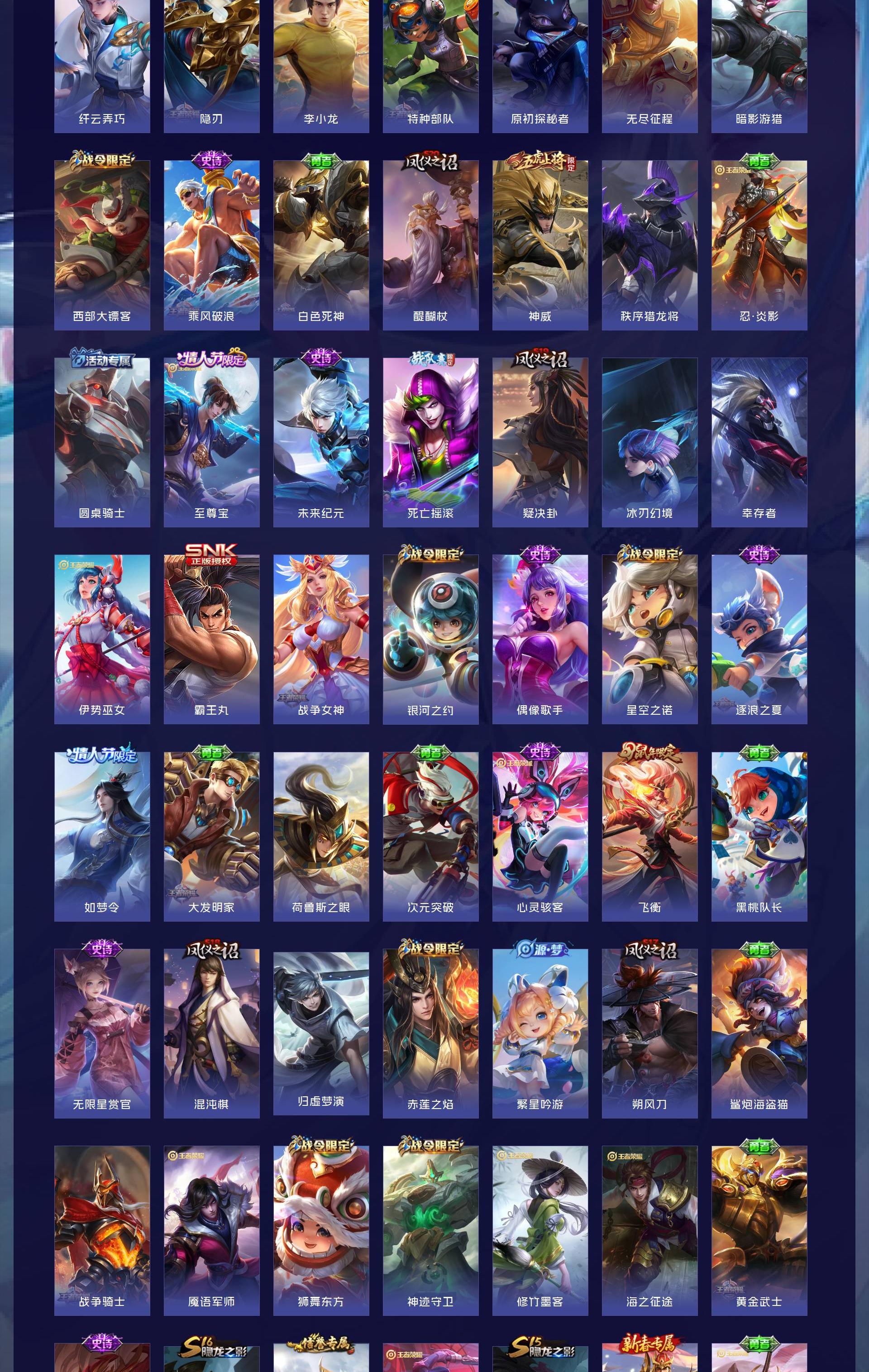 350个皮肤多传说限定一荣耀典藏