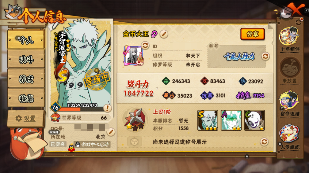 100w战力五影斑十尾带土3s+面麻198直购a共7A战力1
