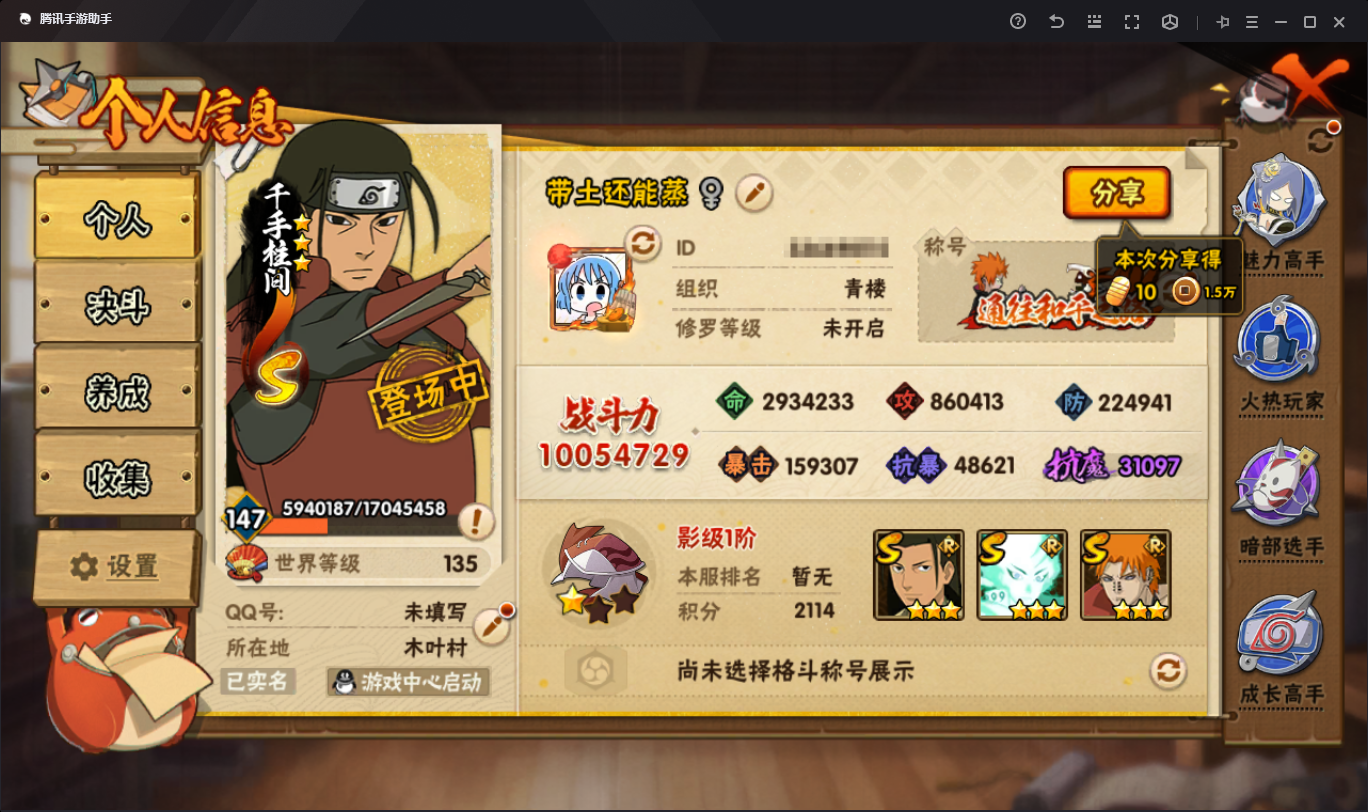 1005W战力超哥破面22S+1个328祈愿A+7个198直