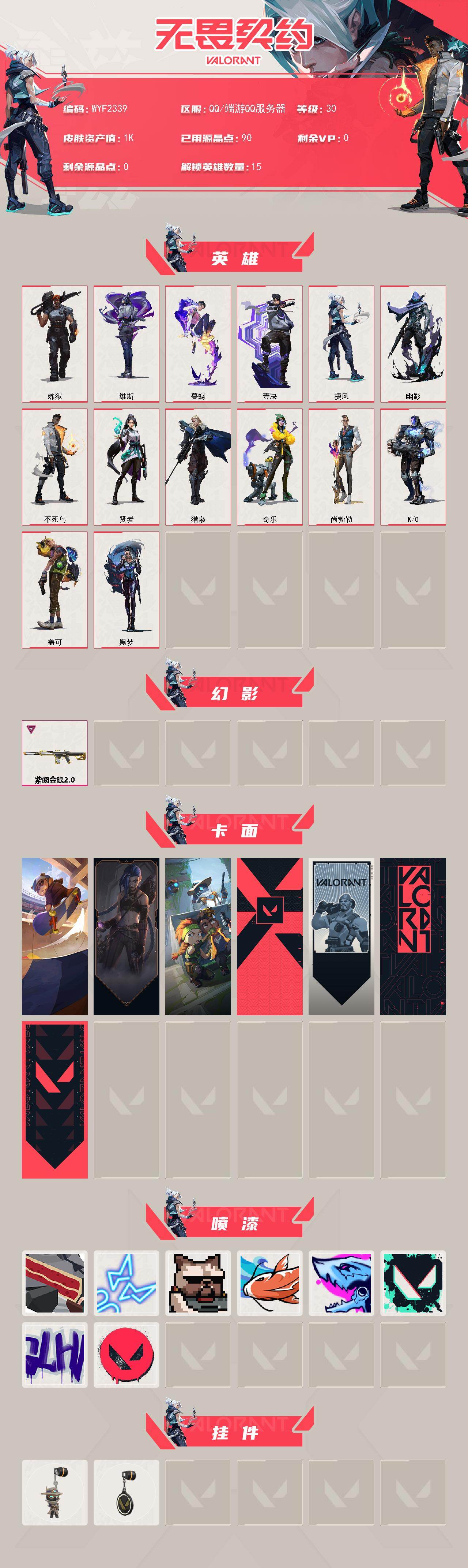 【WYF2339】终极*1/卓越*1/皮肤*13/等级*30/段位:未定级/炼狱/维斯/暮蝶/壹决/捷风/幽影/不死鸟/贤者/猎枭/奇乐/尚勃勒/K/O/盖可/黑梦/幻影-紫阙金琅//2.0/Clutch 卡面/《双城之战》金克丝 卡面/别冒尖 卡面/代号红色 卡面/新兵报到 卡面/V契约 卡面/无畏契约 卡面/蛋糕还是爆能器? 喷漆/霓光四射 喷漆/关门放狗 喷漆/红鳞 喷漆/暴走萝莉 喷漆/胜利属于无畏契约 喷漆/GLHF 喷漆/无畏契约 喷漆/无畏契约GO!第一卷 零 挂饰/无畏契约 纪念